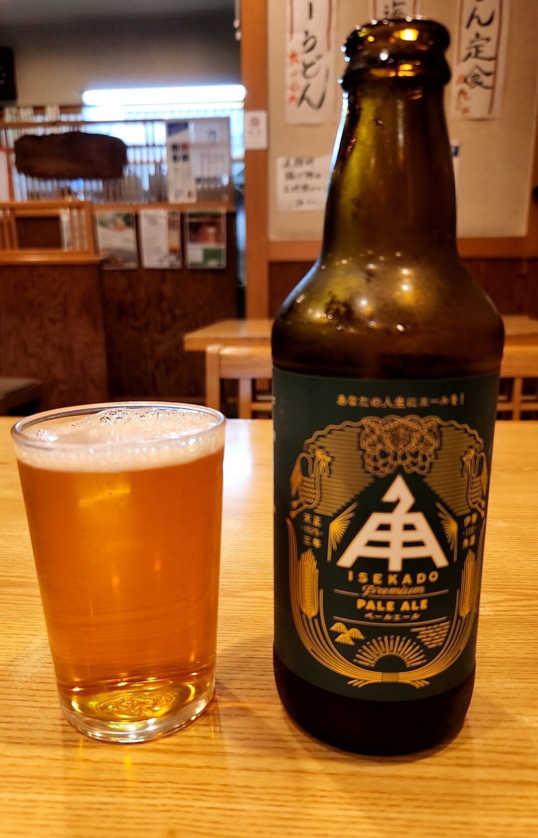 折角なのでご当地ビールを。伊勢角。うどんもアテになってしまう・・・