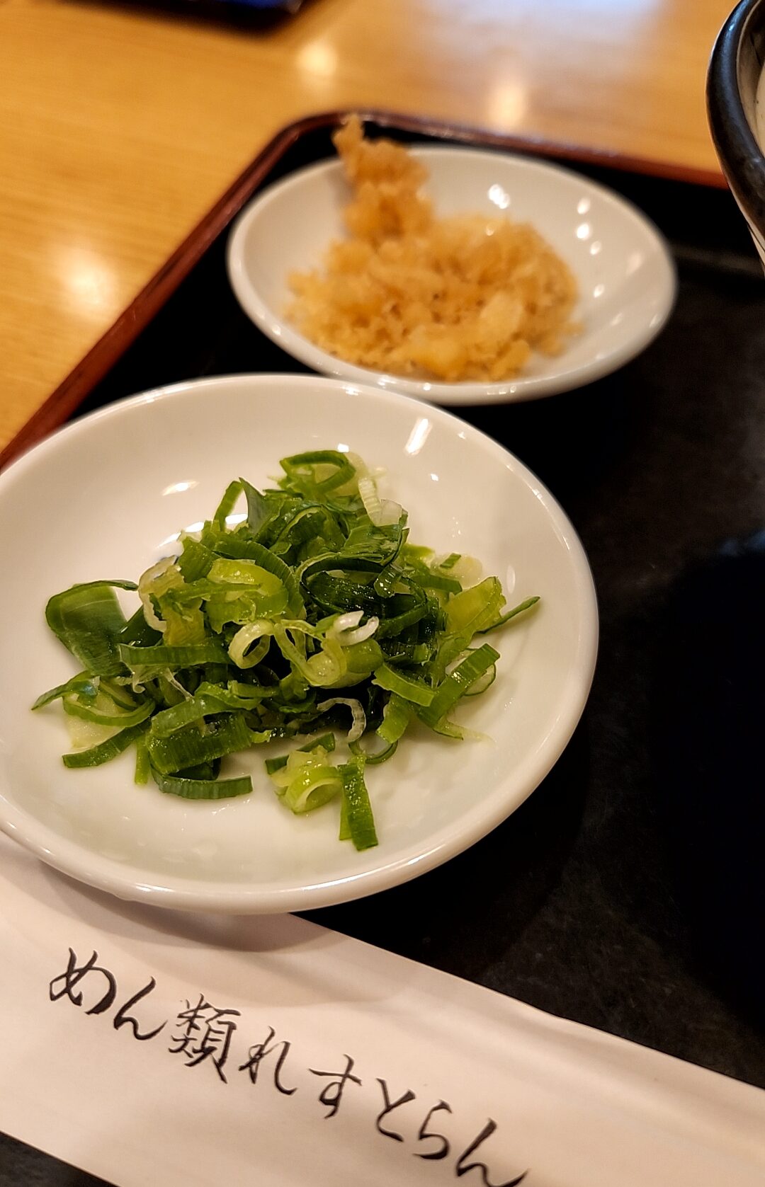 ねぎ・天かすは後半に使用し、味だけでなく食感も楽しみたい。一味も絶品です