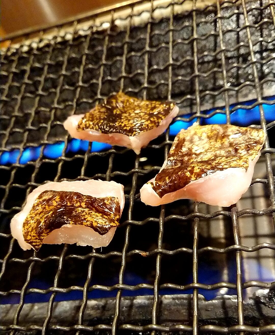 こんな感じで身→皮の順に、焦げ目つくまで炙って、砂糖醤油で頂く。特に皮パリッパリ位に炙った方が良い