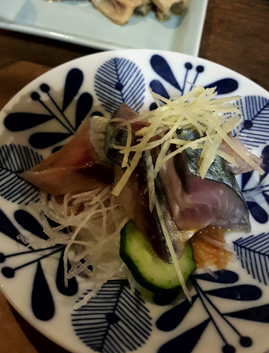 かつて一番のお気に入りだったのが、この締めさば。花のように盛り付けられ、酢の下限と刻み生姜が心地よかった。こちらは現在、販売していないようだ