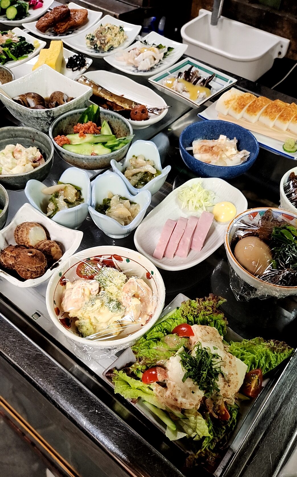 中央のテーブルに並ぶ小皿料理。ここから客は自由に手に取り、皿を最後にカウントして勘定となる。兎に角、どれもこれも美味い