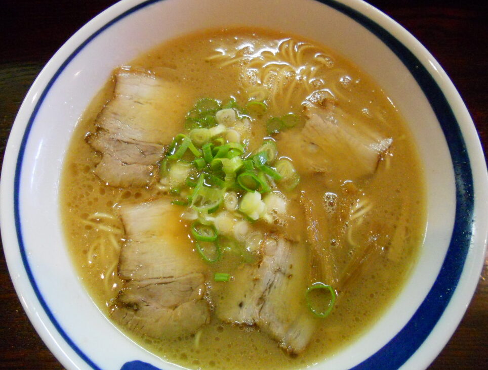 ラーメン。豚骨の味わいが良く出ているスープ。細麺との相性も良いのだが、量が少なめのため飯物と共に食べるのが良いだろう。チャーシューは薄いが4枚も入り得な気分になれる