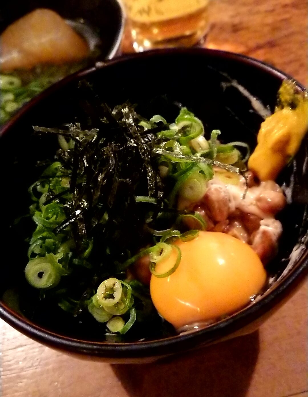 納豆は毎回、卵黄をお願いしている。小鉢系だと、イカの入ったてっぱい(いわゆるヌタ)も美味い