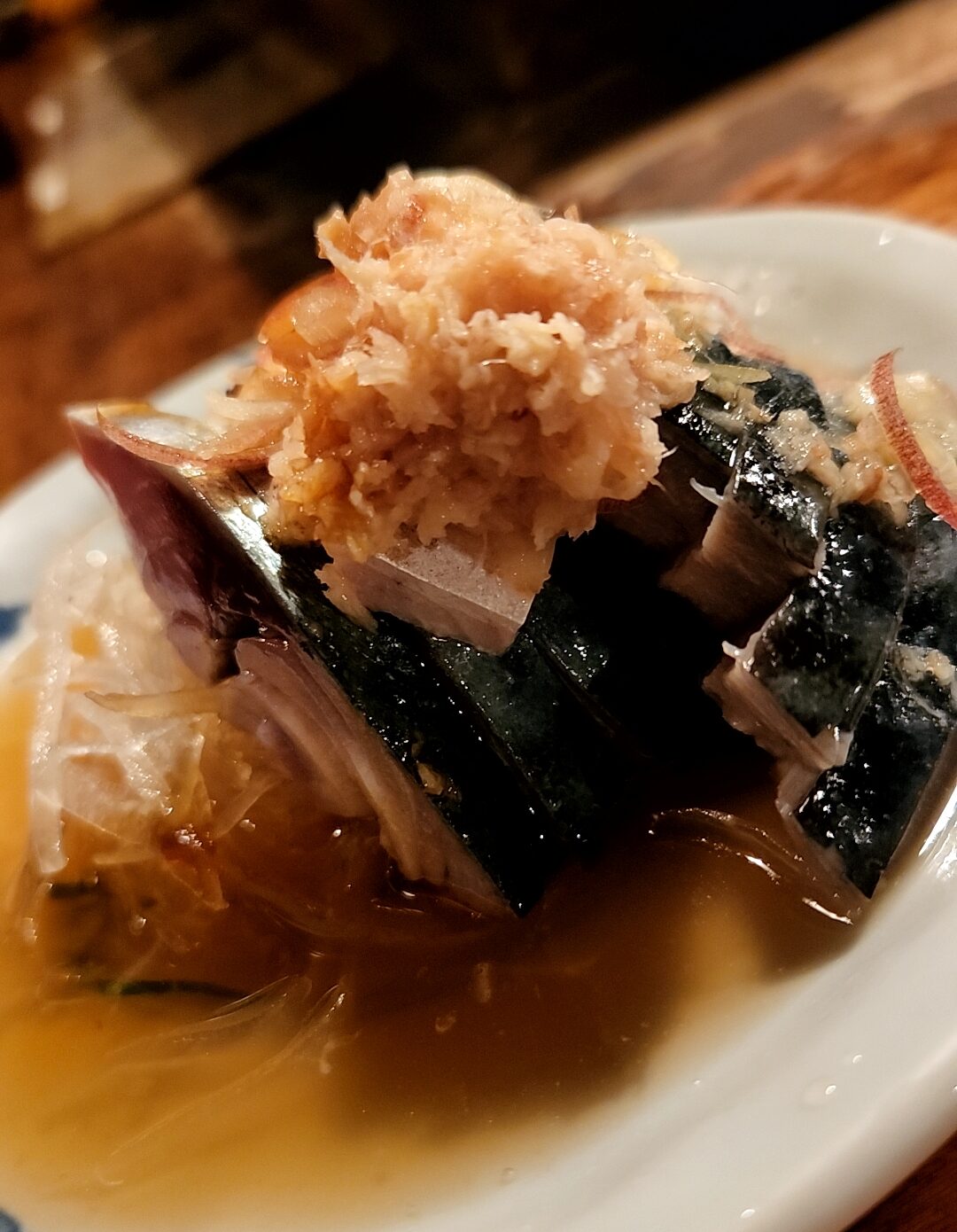 しめさば。この独特のお酢(自分のところでブレンドしているのでしょう)と、良く〆られたサバ。エンガワみたいな固いトコが好き。生姜など薬味と共に