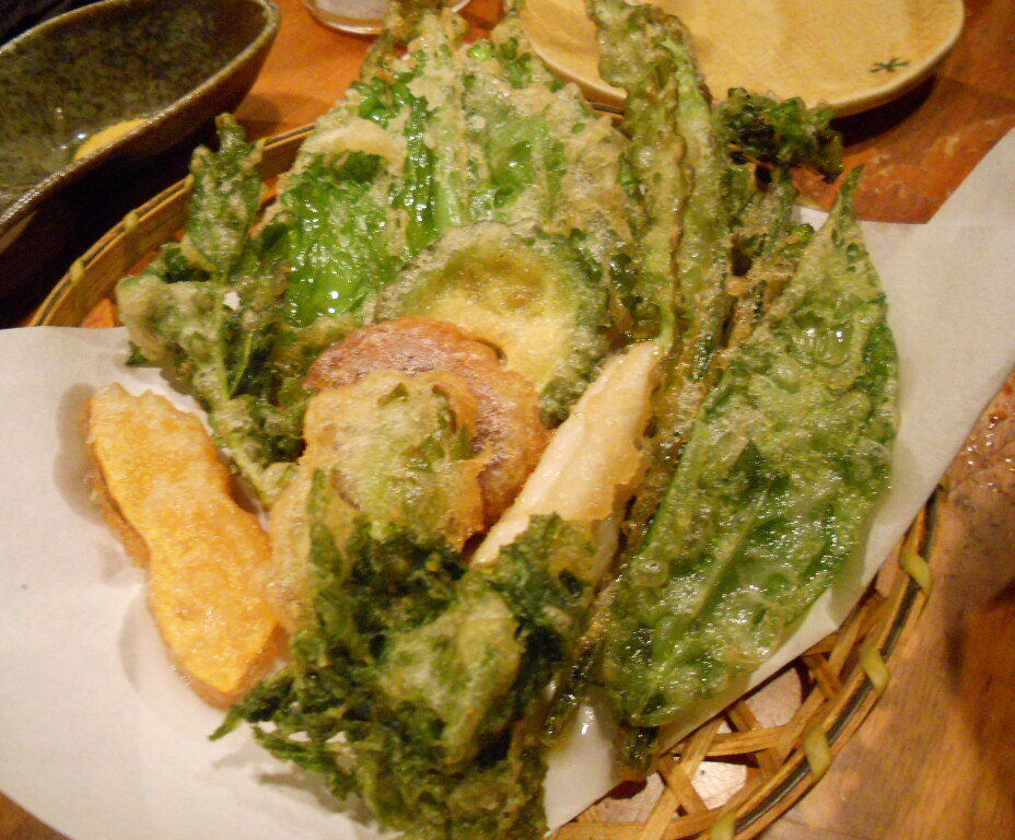 島野菜の天ぷら。ご主人に一つ一つ説明頂いたがほぼ失念、という・・・ゴーヤやヒパーチなど。やさしい味わいだが箸が止まらない