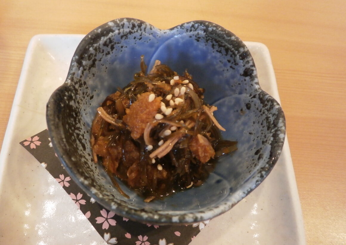 うにの松前漬け。丼のみの単品注文だと物足りないかなと思いオーダー