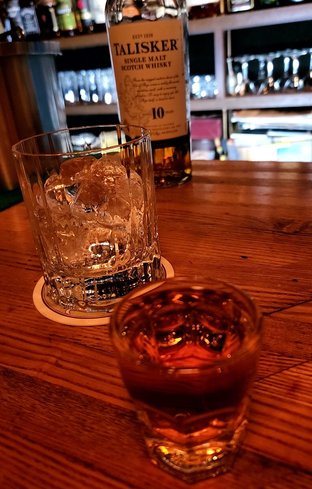 タリスカー。お気づきだろうか・・・いずれも、オンザロックで頼んでいるのだが、ウイスキーはストレートで提供してくれるのだ。従ってはじめはウイスキーをそのまま楽しめるのだ。このシステムはかなり珍しいと思う