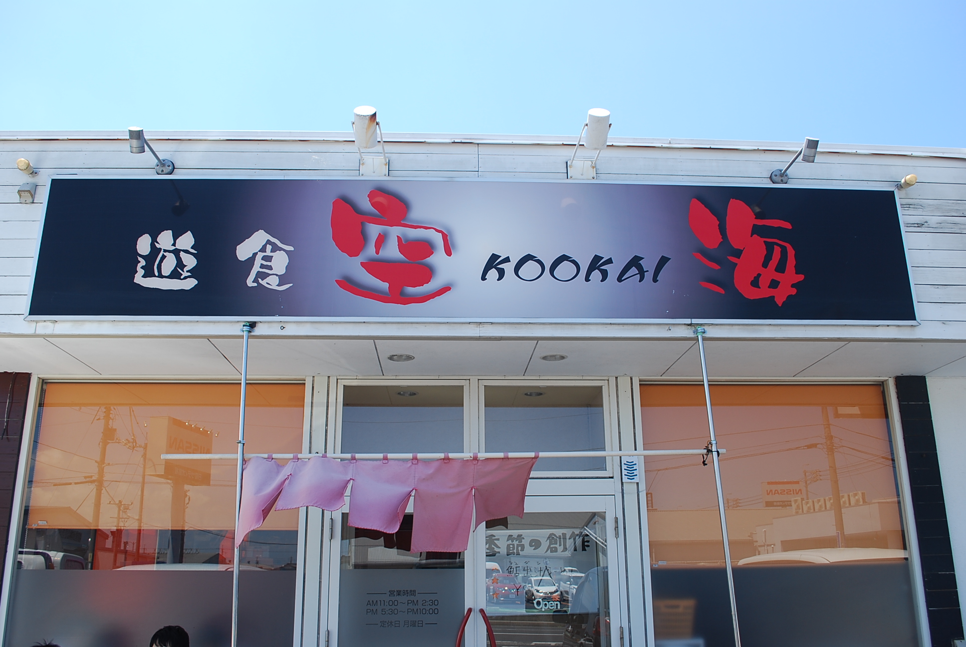 出雲市内でのラーメン行脚。1軒目のあった出雲市駅南口から、今度は北口方面にあるお店に向かう。国道9号線をひたすら西に向かう。兎に角遠い。季節は7月でずっと快晴。炎天下の中、40分も頑張って歩いた(ちなみに駅からだと2キロ程度)ヘトヘトになったが、それでも何とか目的の店に到着した「空海」は、5名ほど並んでいた。