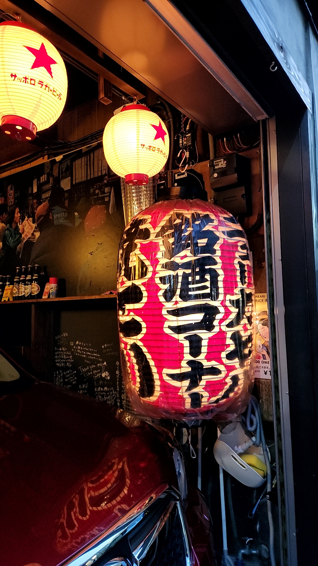 亀島川沿いにある老舗。赤い提灯が目印だが、入口に乗用車が停車しているのでいきなり入りにくいという・・・しかし中はいつも大盛況。まずはカウンターで瓶ビールと、小皿のアテを頼む。その後荷物を置いて陣地をキープ。大体、焼鳥の台を利用することが多いかな。そしてセルフ焼鳥も楽しむ。大声は禁物、普通に怒られる。自動販売機のキンミヤで、ポン酢のチューハイも美味い。