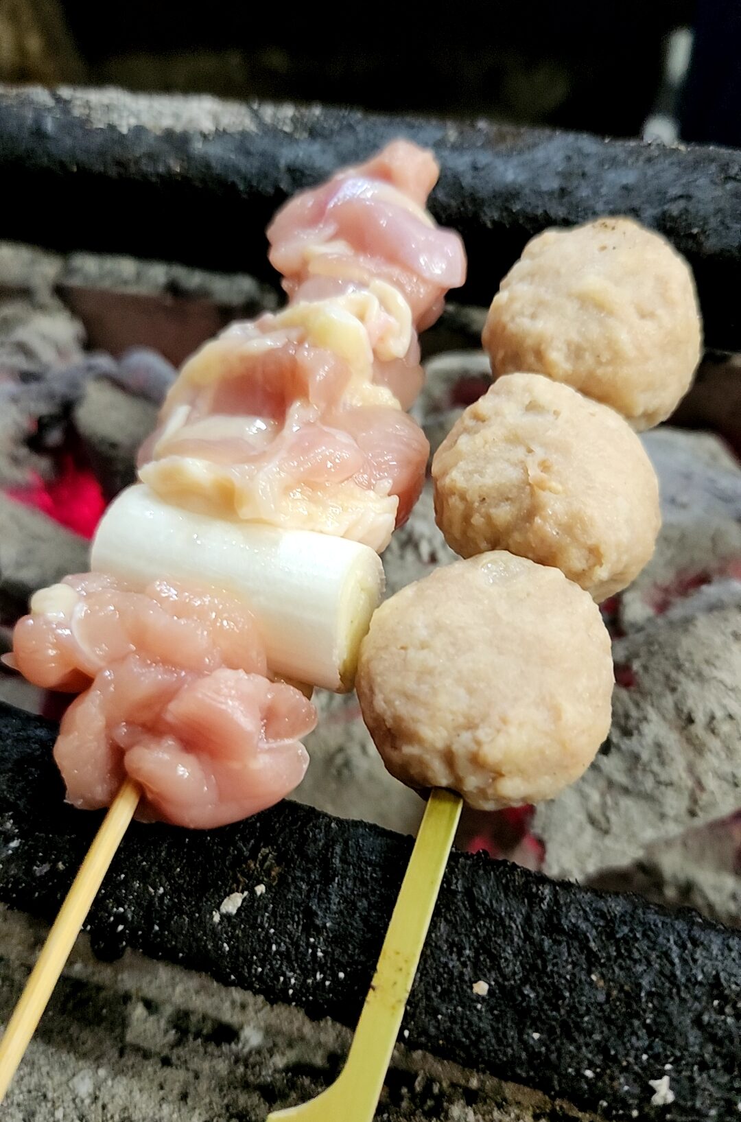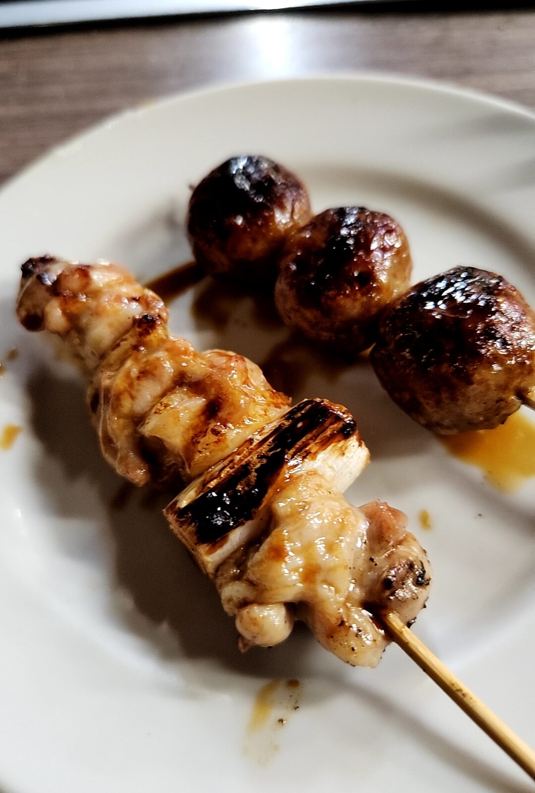 焼鳥・つくね。セルフ焼きは非常に珍しい。天山戸隠やポン酢チューハイを片手に、しっかり様子を見ながら焼く