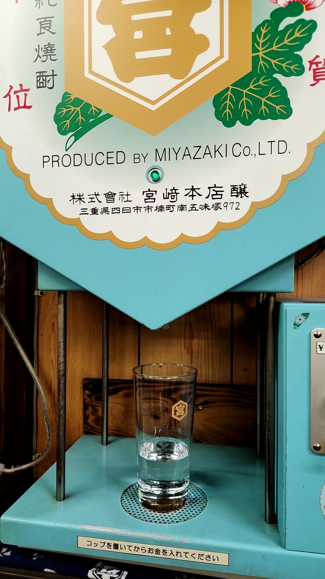 グラスを置いて、コインを投入する(両替可能です)と、上から焼酎が・・・