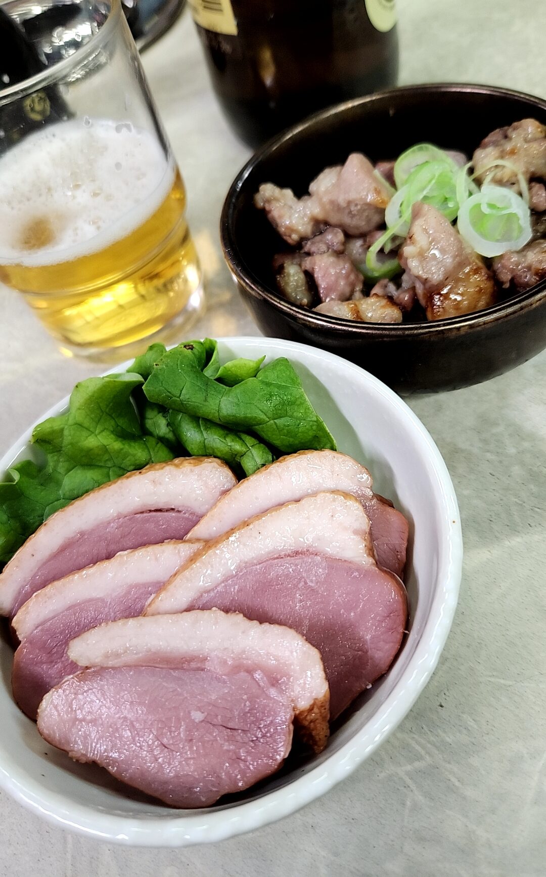 鴨ロース。鶏肉はチンして提供