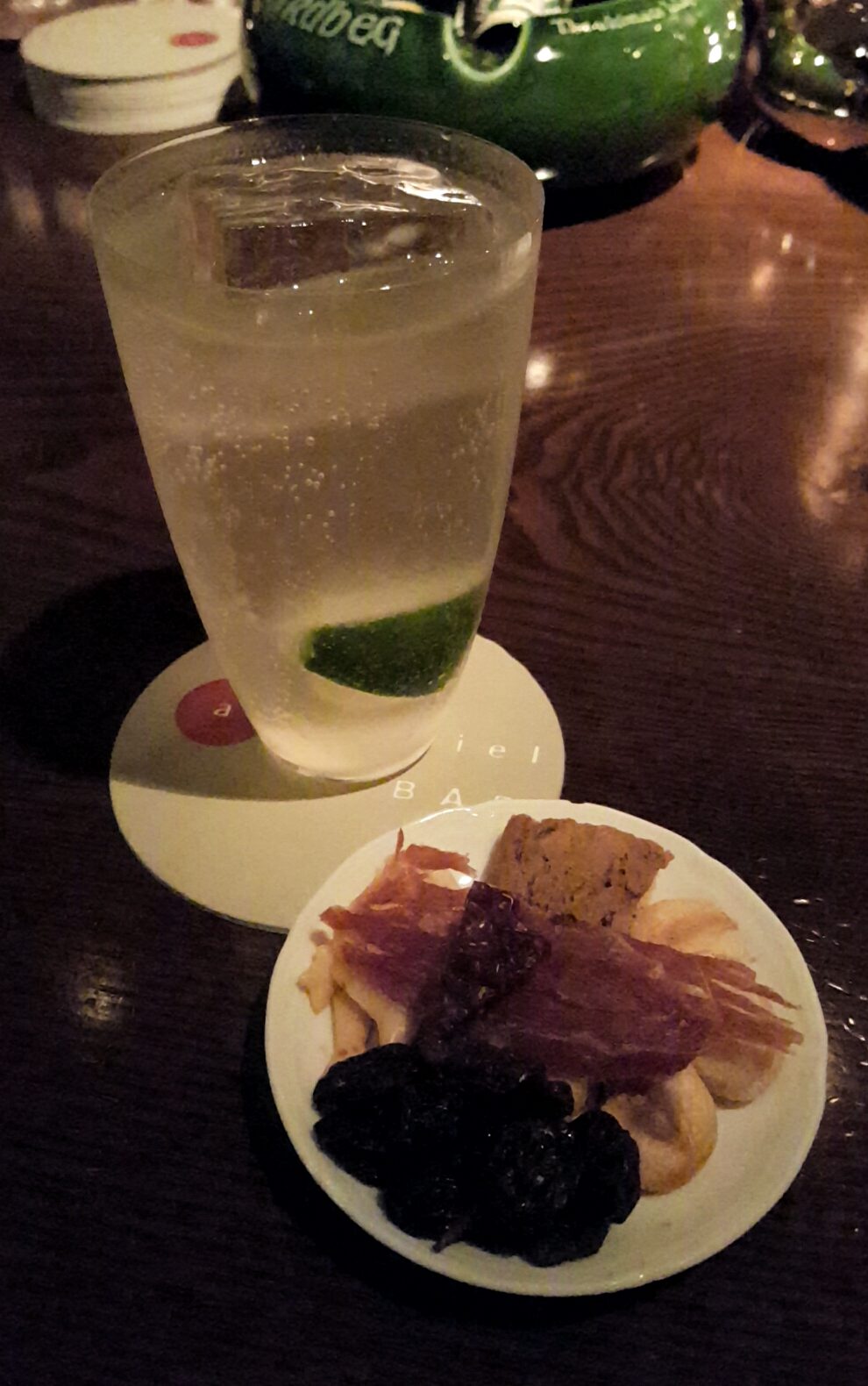 初訪問時に頼んだジントニック。2度目の訪問時は常連さん交えて盛り上がったものの、基本的には静かな店で、ここも又、酒と向き合うお店と言うべき