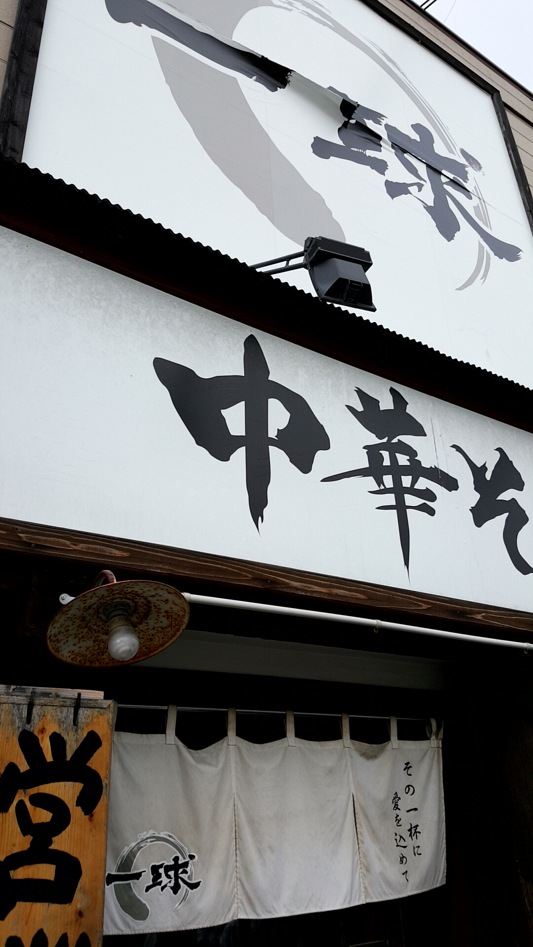「一球」という店に案内された。手形というエリアで、秋田駅から北東の位置にある。駅から徒歩なら1キロ程度なので15分くらいで着くことだろう。この辺は市内でもラーメン屋の密集地帯らしい。中でもこちらは人気店で、午後2時でも20分くらい待たされた。