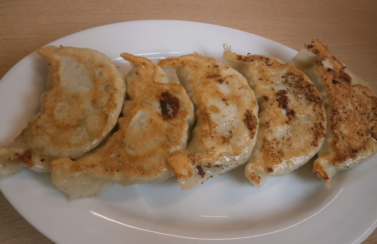 餃子。大ぶりで、身もしっかり。キャベツがたっぷり入る。皮から手作りの名品