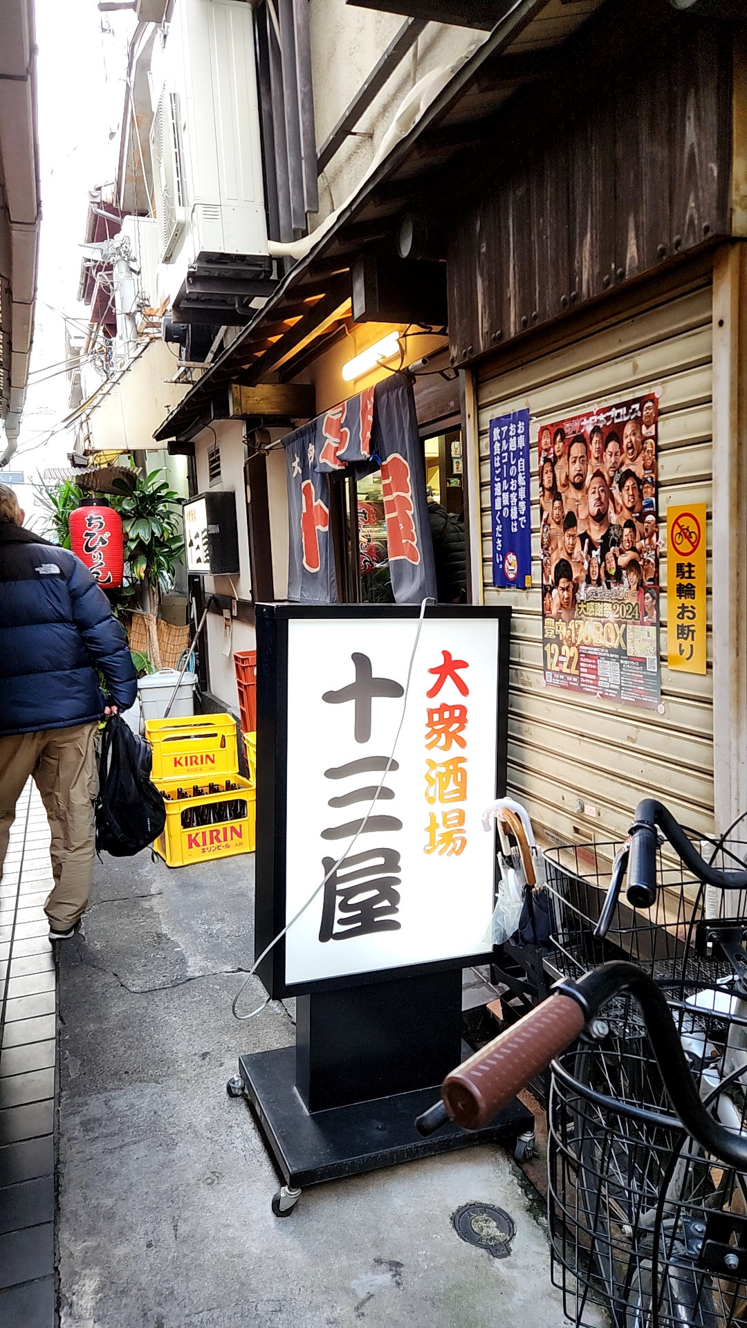 当時、大阪への転勤を前に休日は不動産屋さんの案内で物件探しを繰り返しつつ、既にこの時点から「長い付き合いにしたい」店探しを行っていた(今考えるとだいぶ、がめついな)。そんな不動産業者とのアポの前に初めてお邪魔した十三。「十三屋」は当時、東口にあった。お昼から通しで営業、昼間から大勢の客で賑わう人気店。