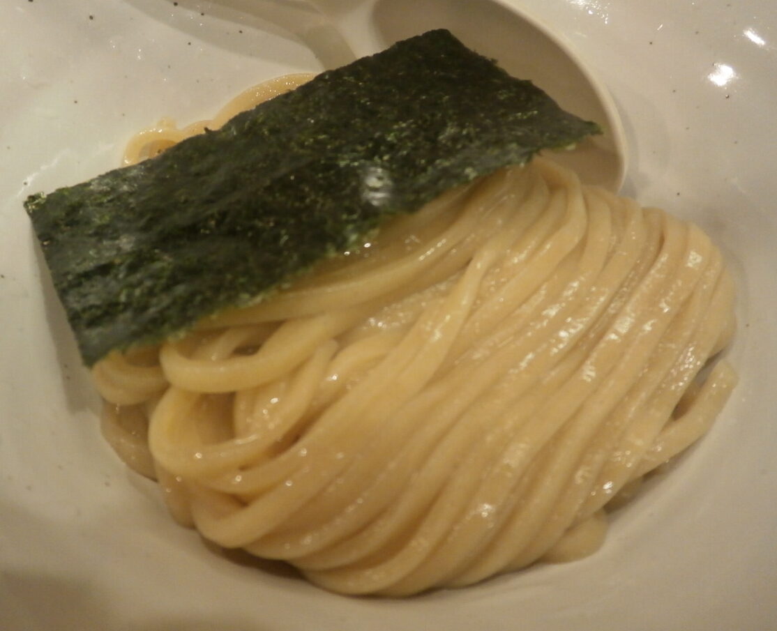ハーフサイズで頼んだ麵。ムチムチ系の太麺ストレートで、小麦の風味もしっかり感じさせる