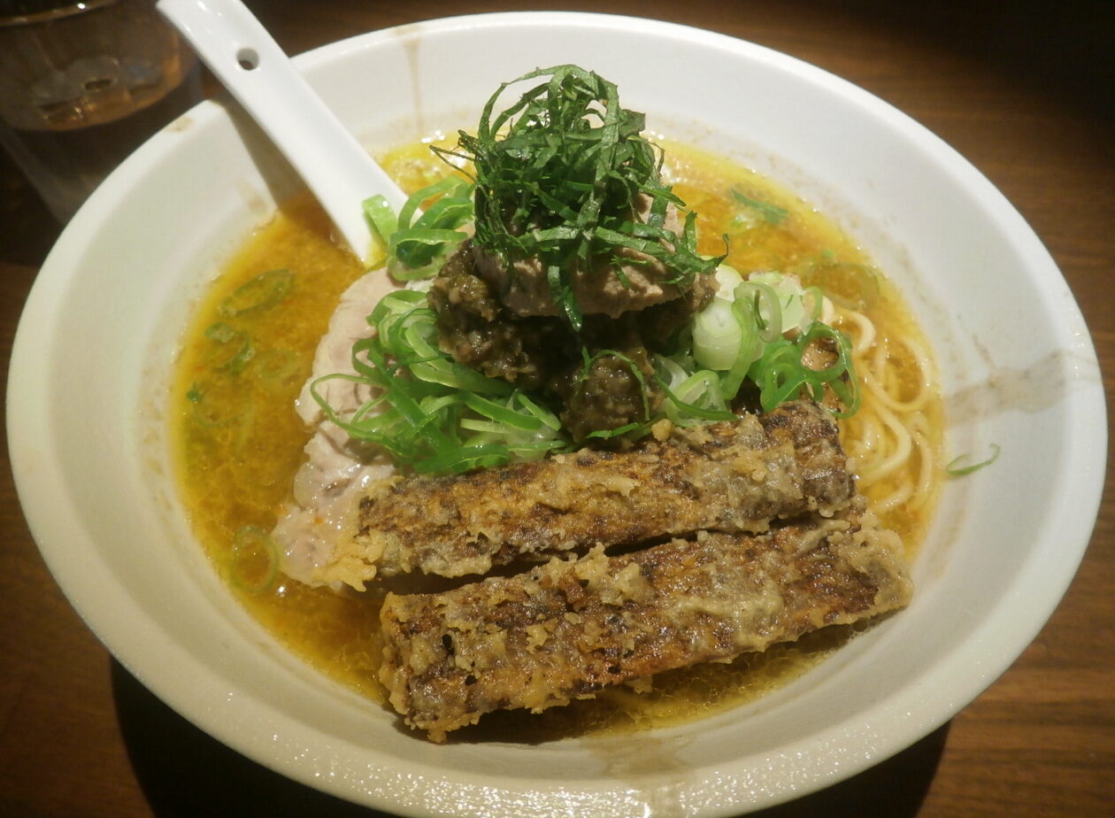 奇抜なのは店名だけではない。味噌ラーメンながら札幌で知られるスタイルとは全く異なる、レバーのペーストを溶かして食べるスタイル。メンマの代わりにごぼうが乗ったりと、いわゆるラーメンという一つの固定概念を丸ごと変えた一杯、ここまで独創的なのは日本全国を見渡しても稀である。