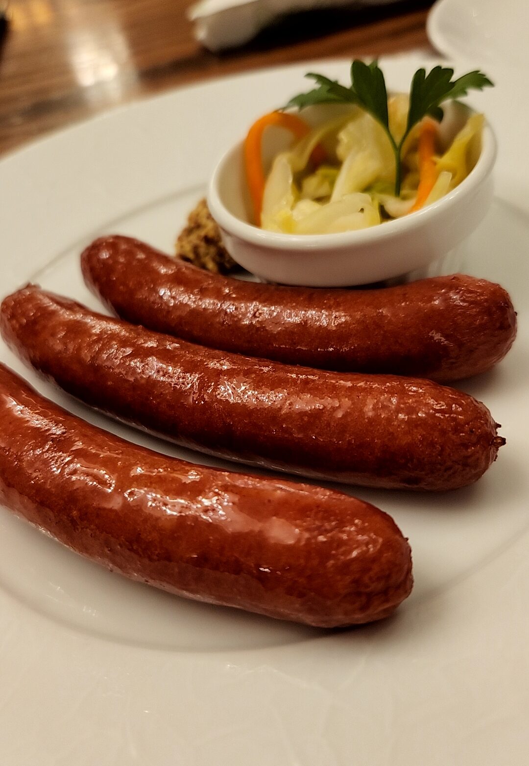 フランクフルトはサイズも味も申し分なし。マスタードをたっぷりとつけて頂く