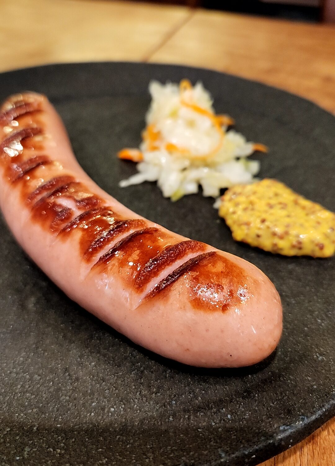 粗挽きポークソーセージはパリッとして、これまた食べごたえ十分