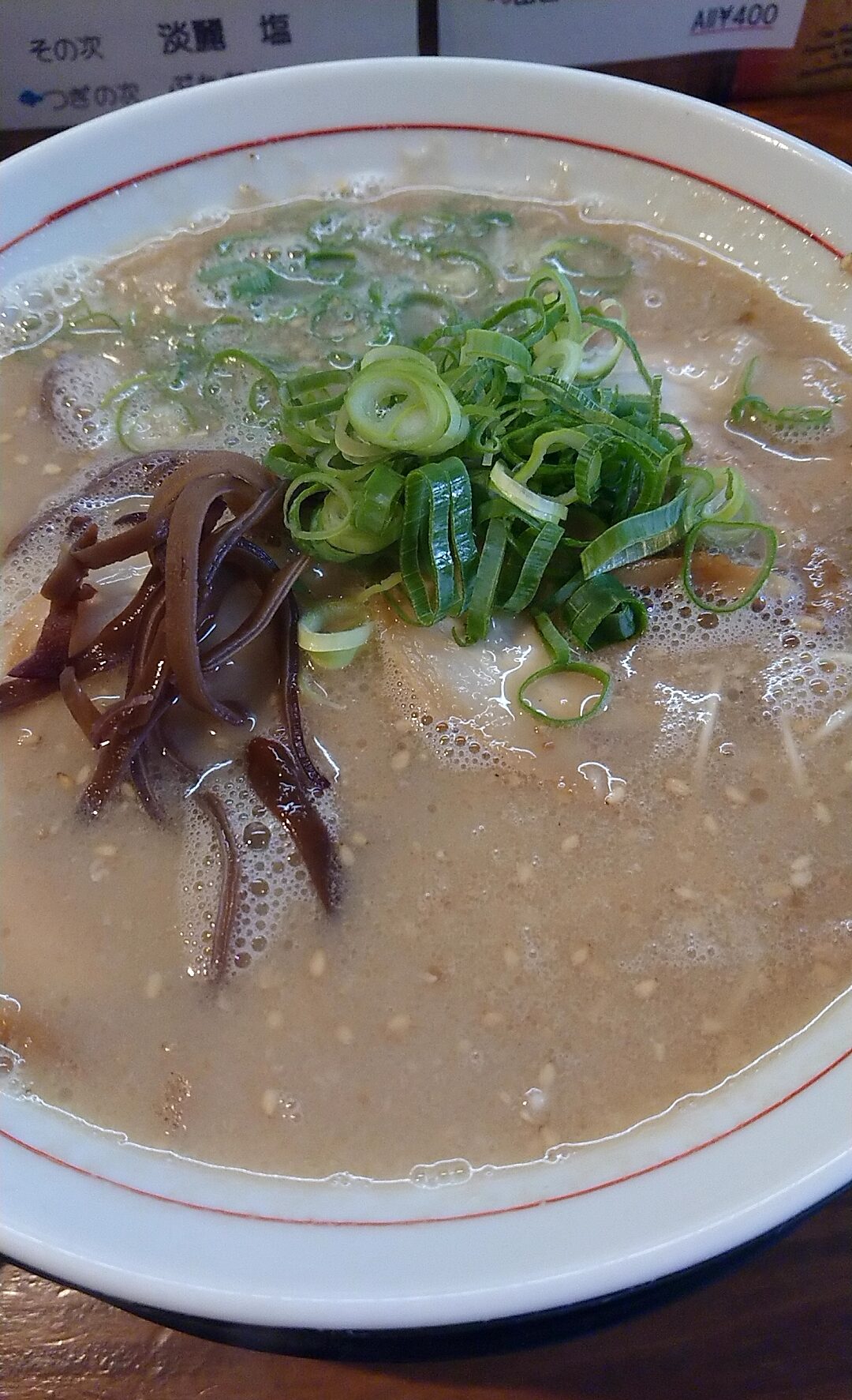 淡麗とんこつ醤油。豚骨でありながら「淡麗」を謳っているが、文字通り比較的口当たりの優しい豚骨スープ。しかしながら旨味はその辺の豚骨ラーメンよりも圧倒的に抽出されていて、非常にクセになる美味さ。
