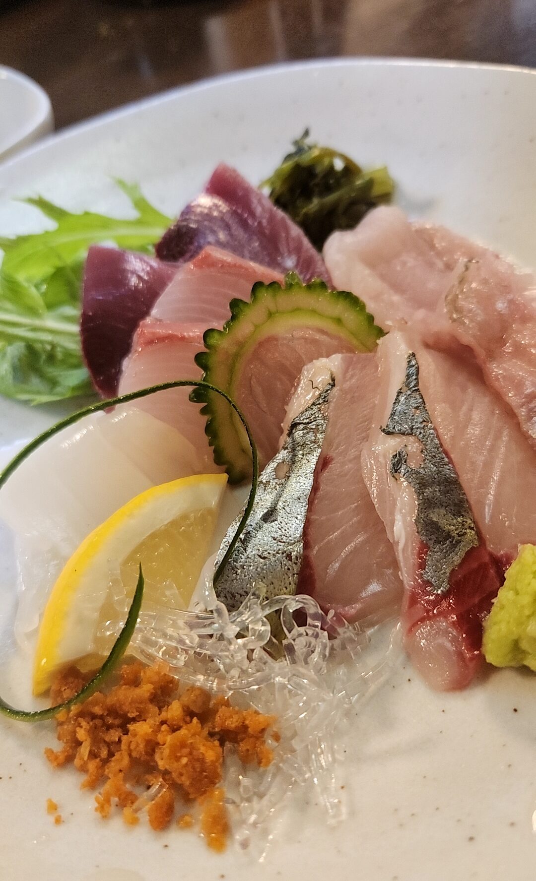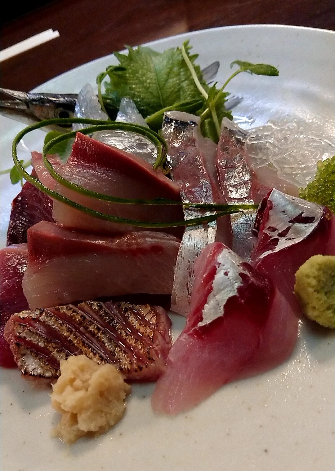 お造り盛り合わせ。2022年5月訪問時はアジ・さより・ブリなど