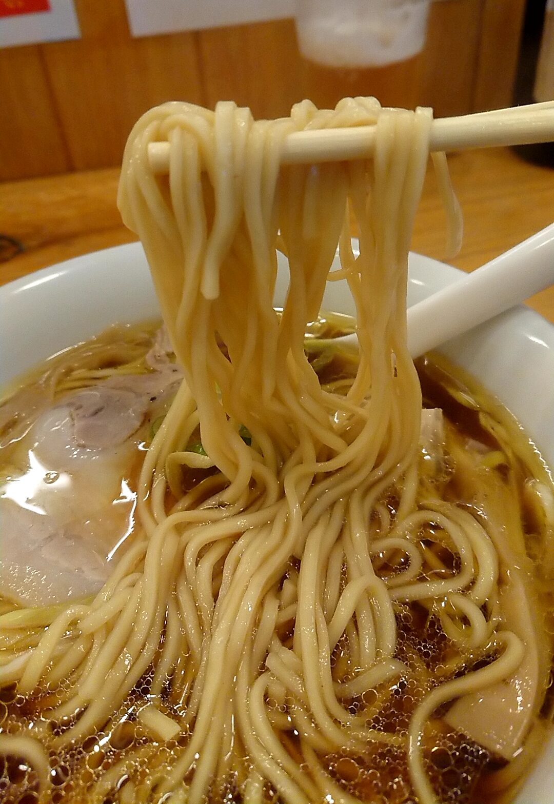 醤油ダレとダシ、鶏油いずれもその主張が強く、しかしながらバランスも良し。やや強めの酸味は生姜ベースなのか…詳細不明だが引きの強いスープだ
