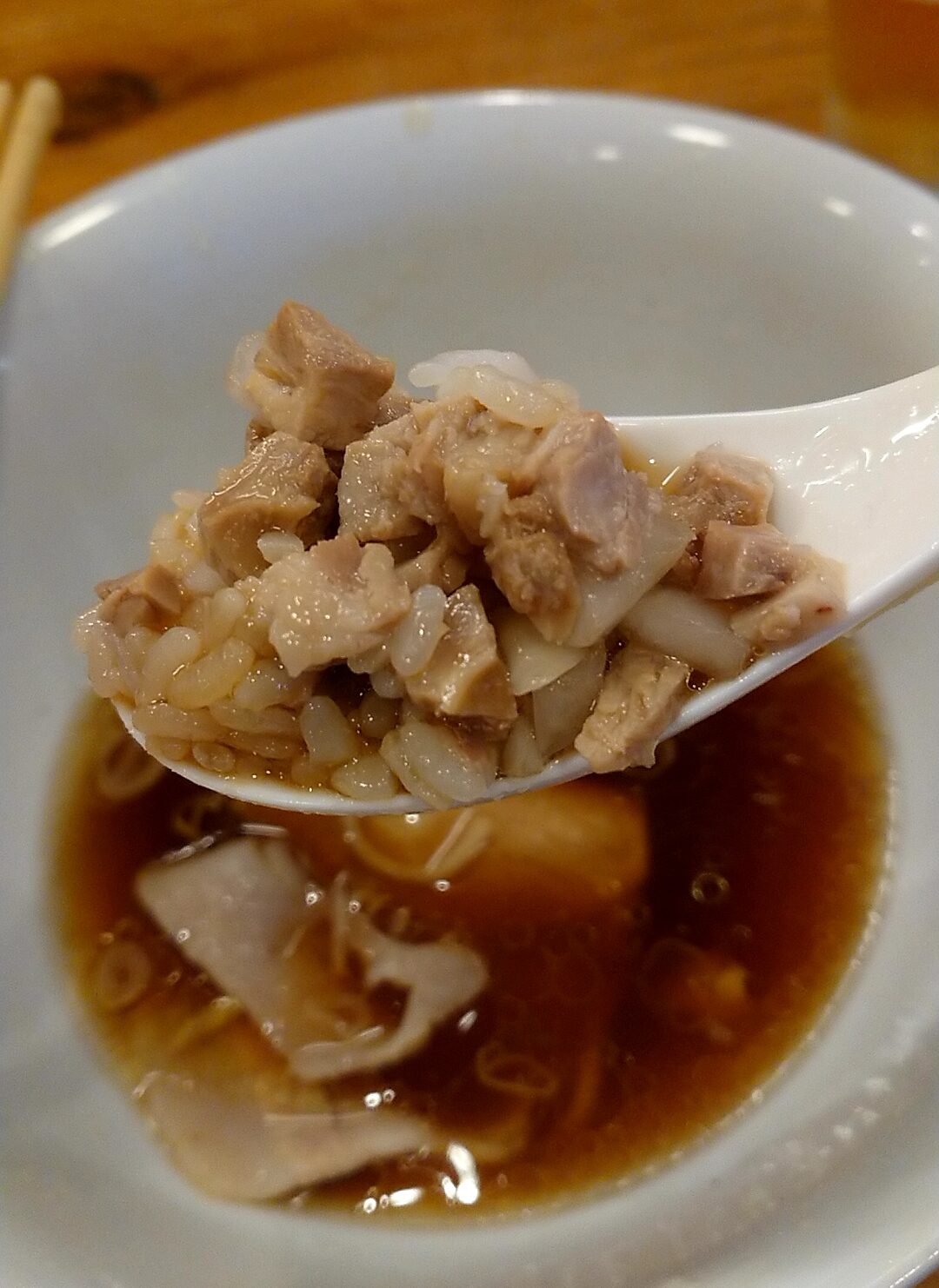 しかし、胃袋に限界があるのでラーメンは1種類しか頼めない。のだが…ついご飯ものも頼んでしまった。すっきりしつつ旨味の強いスープにロース玉ねぎ丼、そしてビールまで頼むとは、なんて贅沢なひと時。そしてこのスープの美味さ。福井のラーメンの新時代を感じさせる名作だった。