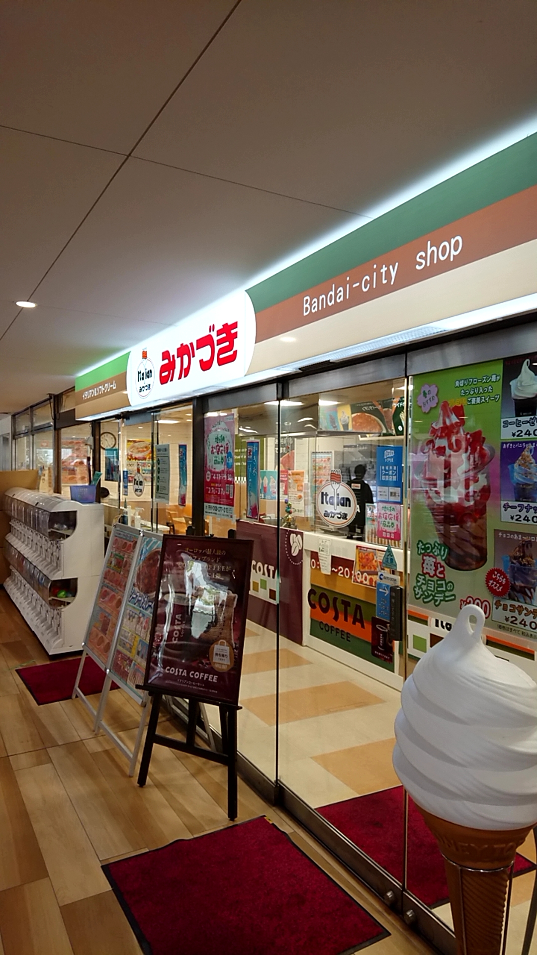 「みかづき」はイタリアン専門というわけではなく、コーヒーやソフトクリームも提供する、いわばファーストフード店(「すがきや」みたいな感覚だった)。イタリアンを頬張る客が多数だが、学生さんなど若いお客さんは普通にソフトクリームなど甘いものを片手にわいわい楽しむ、そんな店。今も市民に愛されていることが、よくわかる。