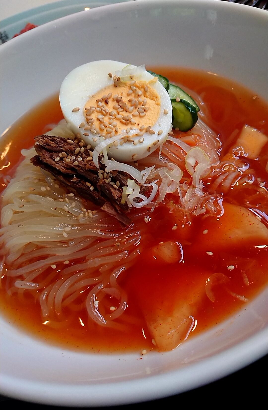冷麺。スープはすっきりしつつもダシの強さを感じさせる