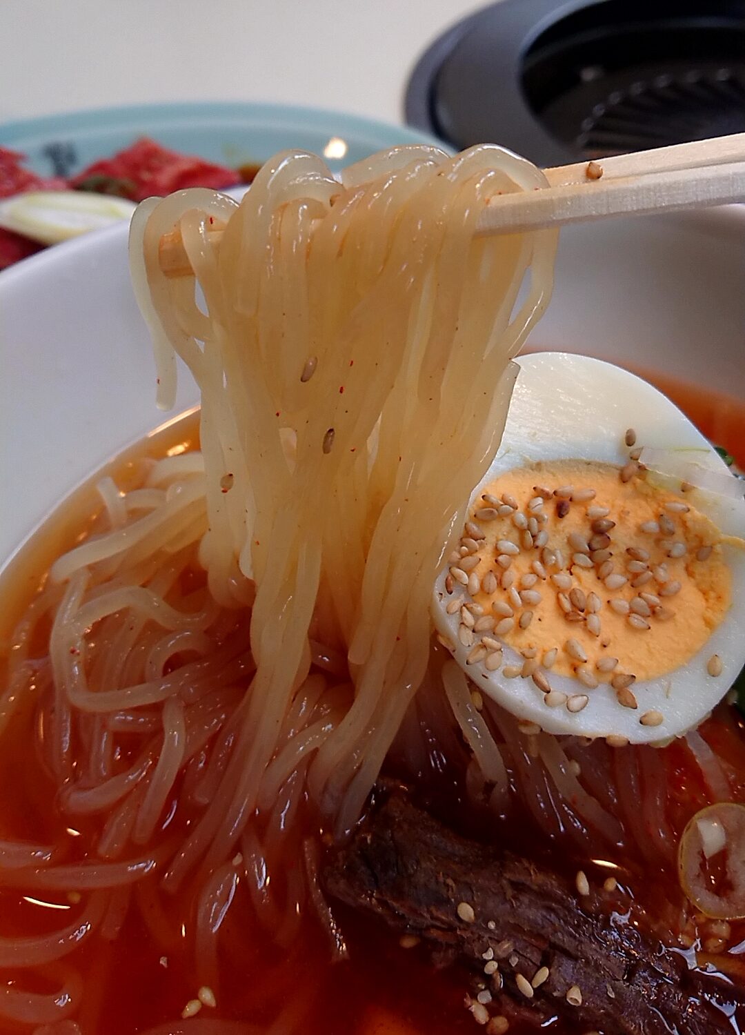 冷麺も美味しいが、焼肉が絶品。わたしにとって「食道園」は冷麺メインではなく、焼肉が主役かなぁ・・・食べ歩きのためカルビ一人前とカクテキのみだったが、もう一皿くらい頼めば良かったかなぁ。次回はミノやハラミあたりも贅沢に食べて、〆にズバババッとこの猛烈な個性の麵を啜りたい。