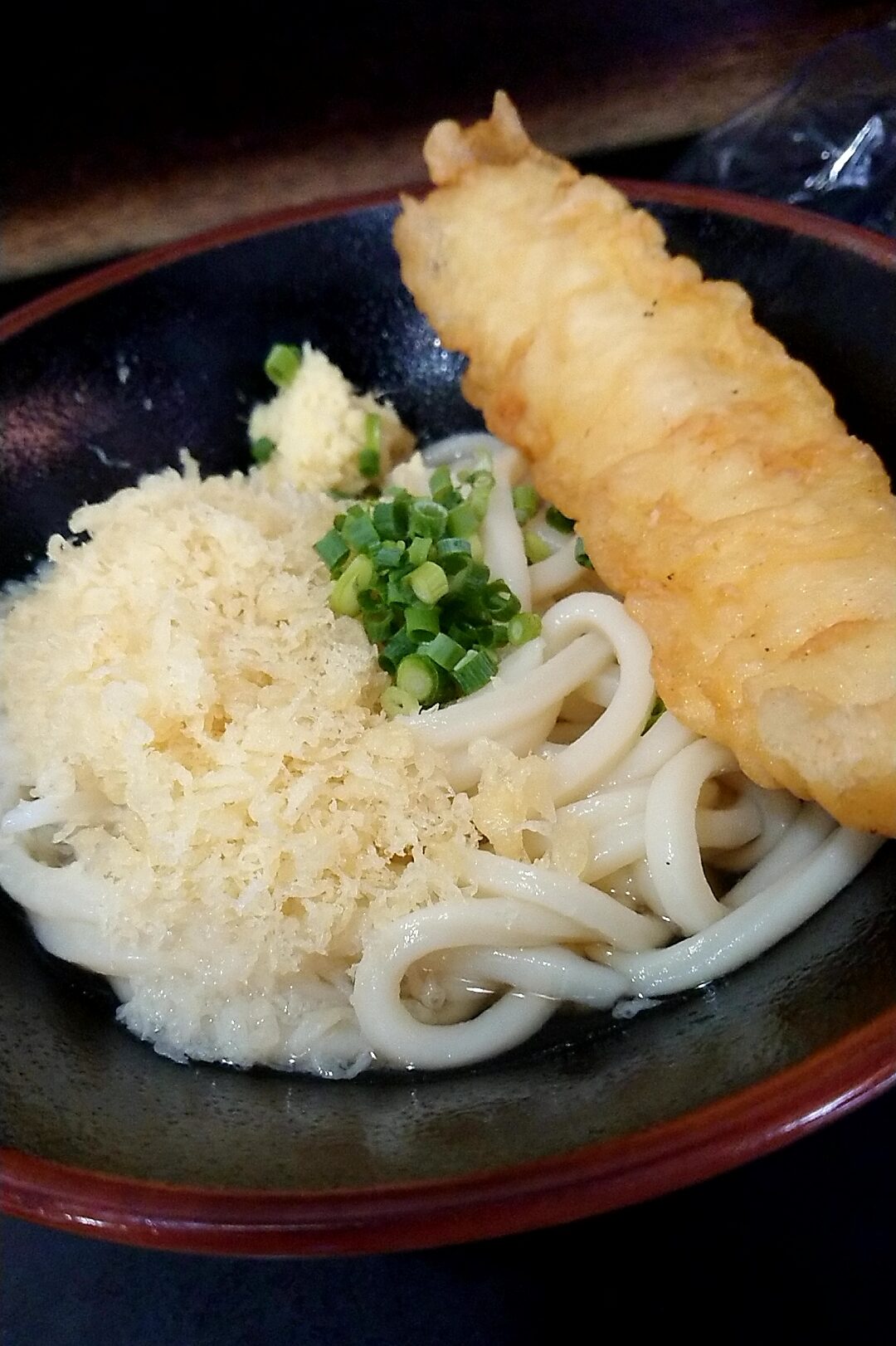 ここはセルフうどん。セルフと言ってもここのは難易度が高い。客自身の手で、テボざるを使って茹でるのだ。