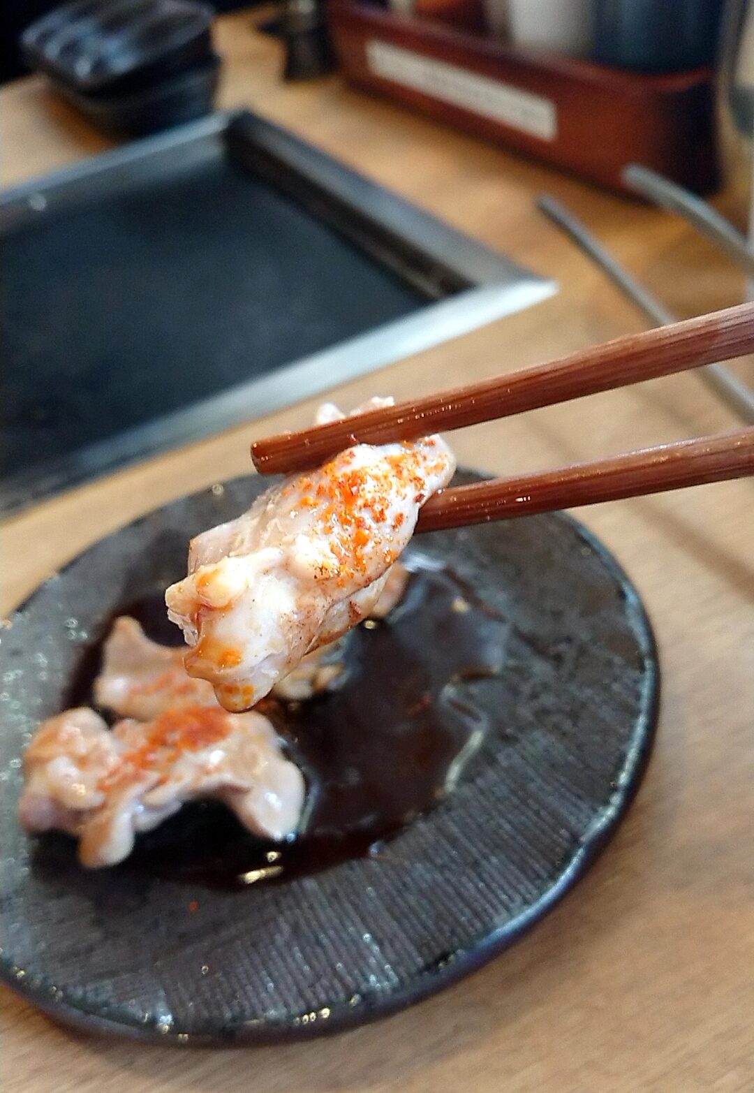 「鳥むつ」というこちらのお店、カジュアルな店内で、目の前には鉄板が。ここは鶏焼肉「とっと焼き」のお店だそう。新鮮な鶏肉をセルフで焼いて食べる。分厚い鶏肉に、甘辛のとろりとしたタレが美味しい。疲れた身体に美味い鶏肉とビールが染みる。