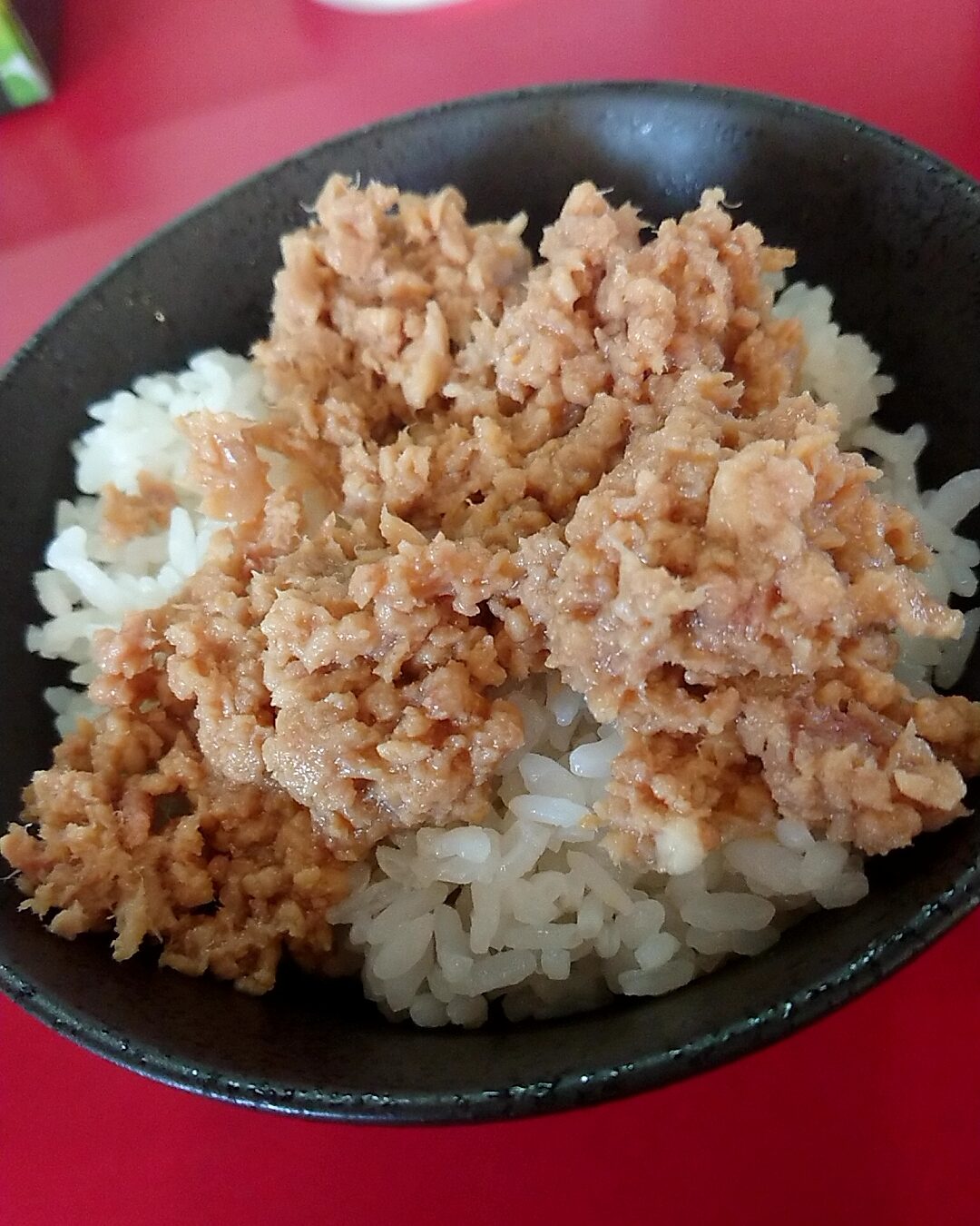 サイドメニューで頼んだ肉そぼろ飯。卓上のマヨネーズも合うし、やはり巨大な海苔を巻いて食べるのがベスト