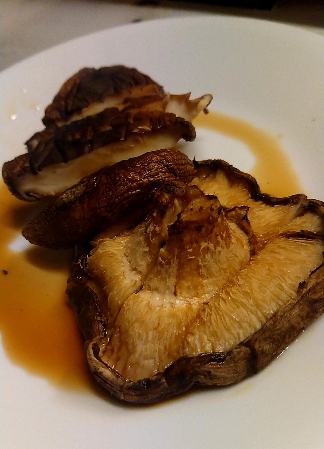 久住しいたけステーキ。分厚い椎茸、甘酸っぱい醤油で流石の美味さ