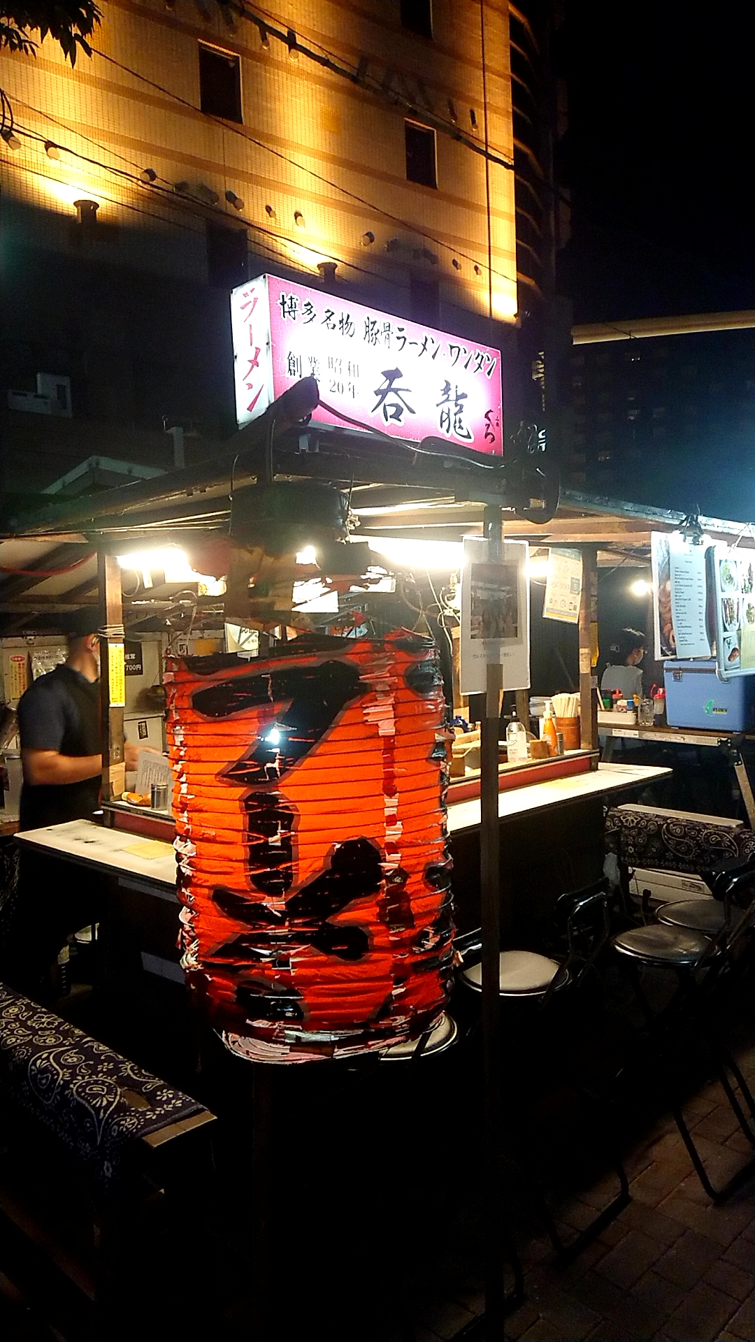 というわけで、あてもなく那珂川沿いへ。恐らく一番屋台が密集しているエリアで、主に観光客が多い。メディアに紹介されるのもこの界隈だ。しかし、知っている店はほぼ無い・・・ざっと一周して、空いている「呑龍」という屋台に入った。事前情報は一切ない。