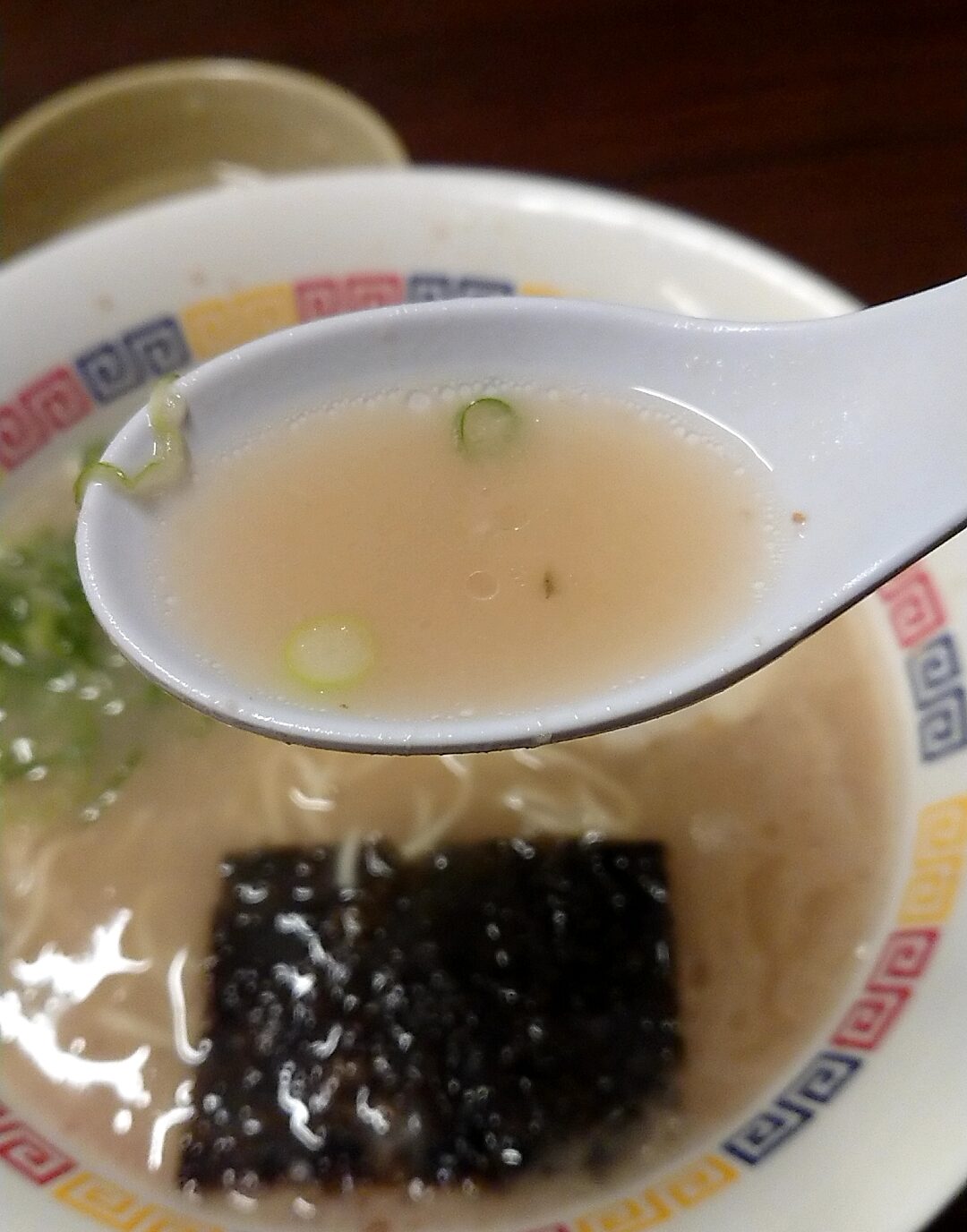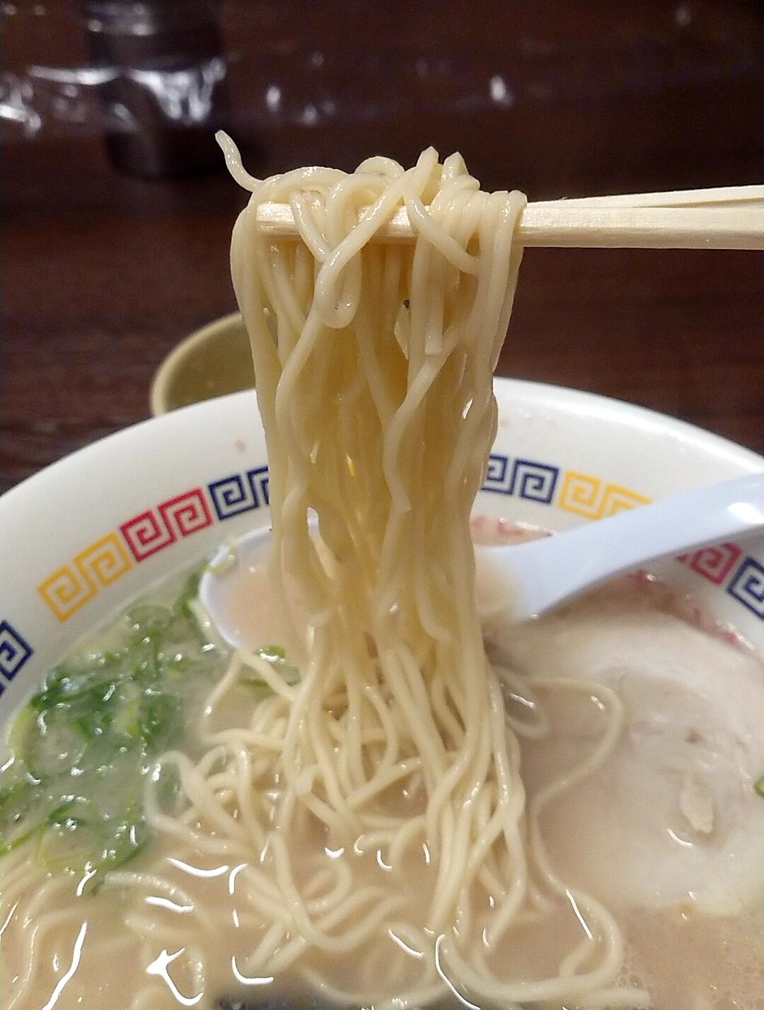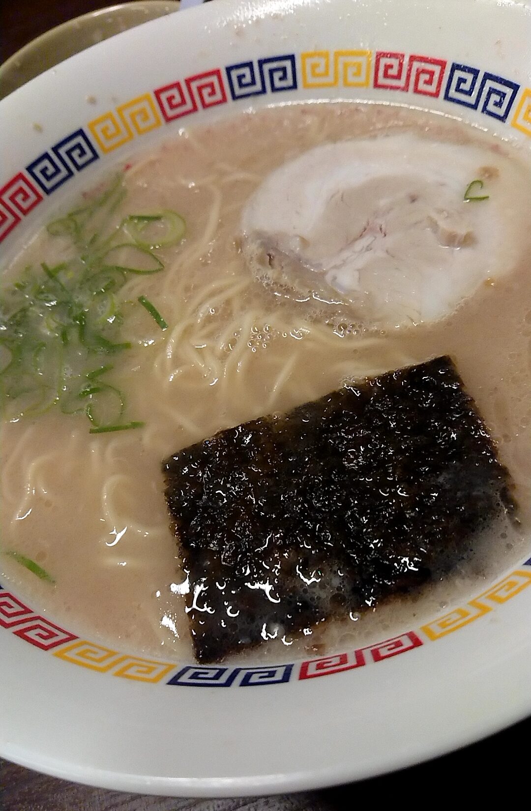 建物は古く、そこそこ広い印象。カウンターが3列並び、テーブルも6卓はある。14時半くらいの訪問でかなり混んでいた。久留米といえば豚骨の発祥と言われ(まだ、その発祥店にお邪魔したことは無いんだけどね)ヘビーな豚骨がウリ。この店も多分に漏れず濃厚。