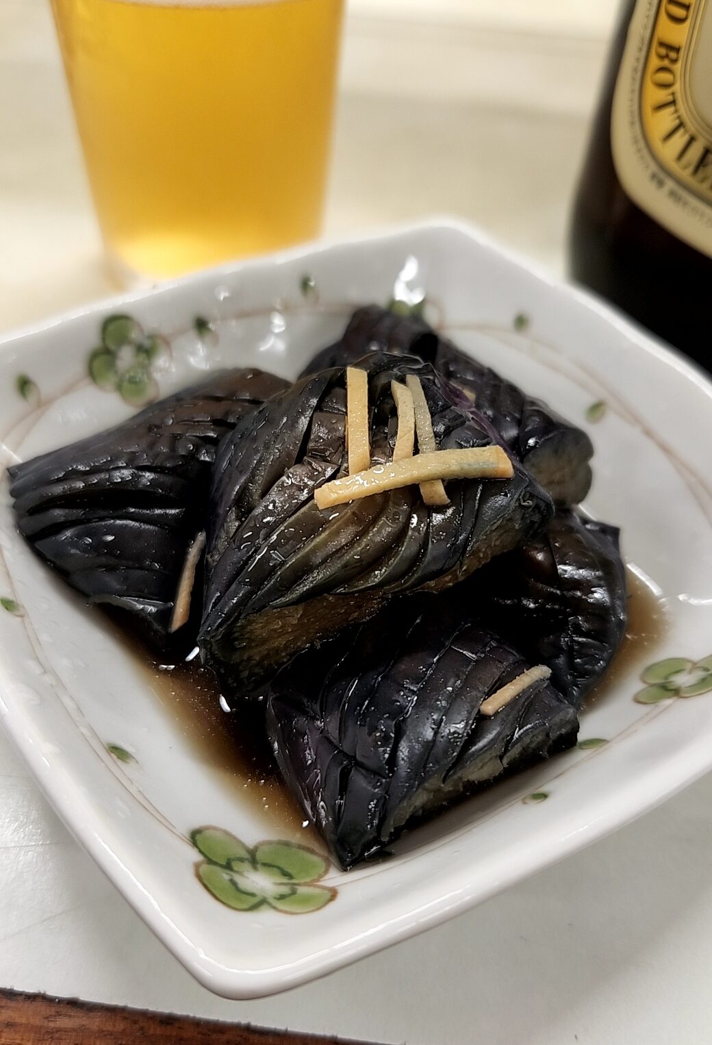 茄子煮。店の奥には冷蔵コーナーがあり、客がセルフで取ってきても良い。こういうスピードメニューがあるのもありがたい