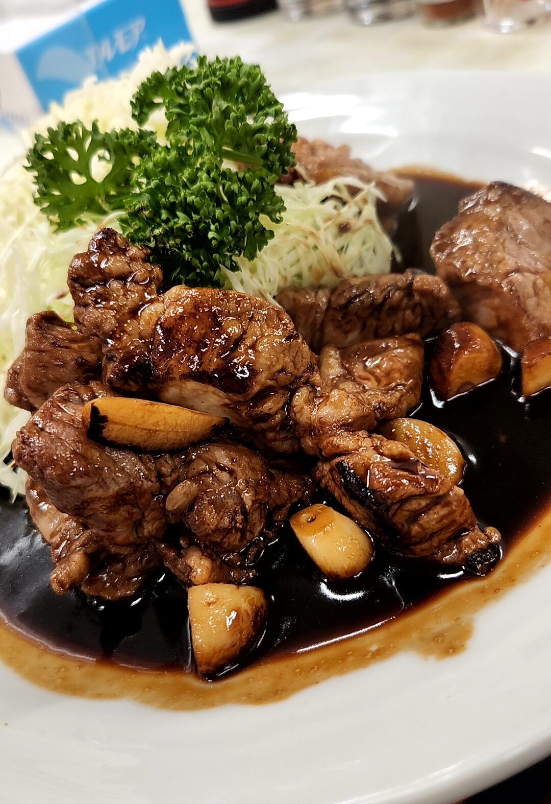 トンテキ。ニンニクの風味たっぷりの分厚い豚肉、ソースの酸味もまた良い。この店の中では高額な方だが、絶対食べるべき