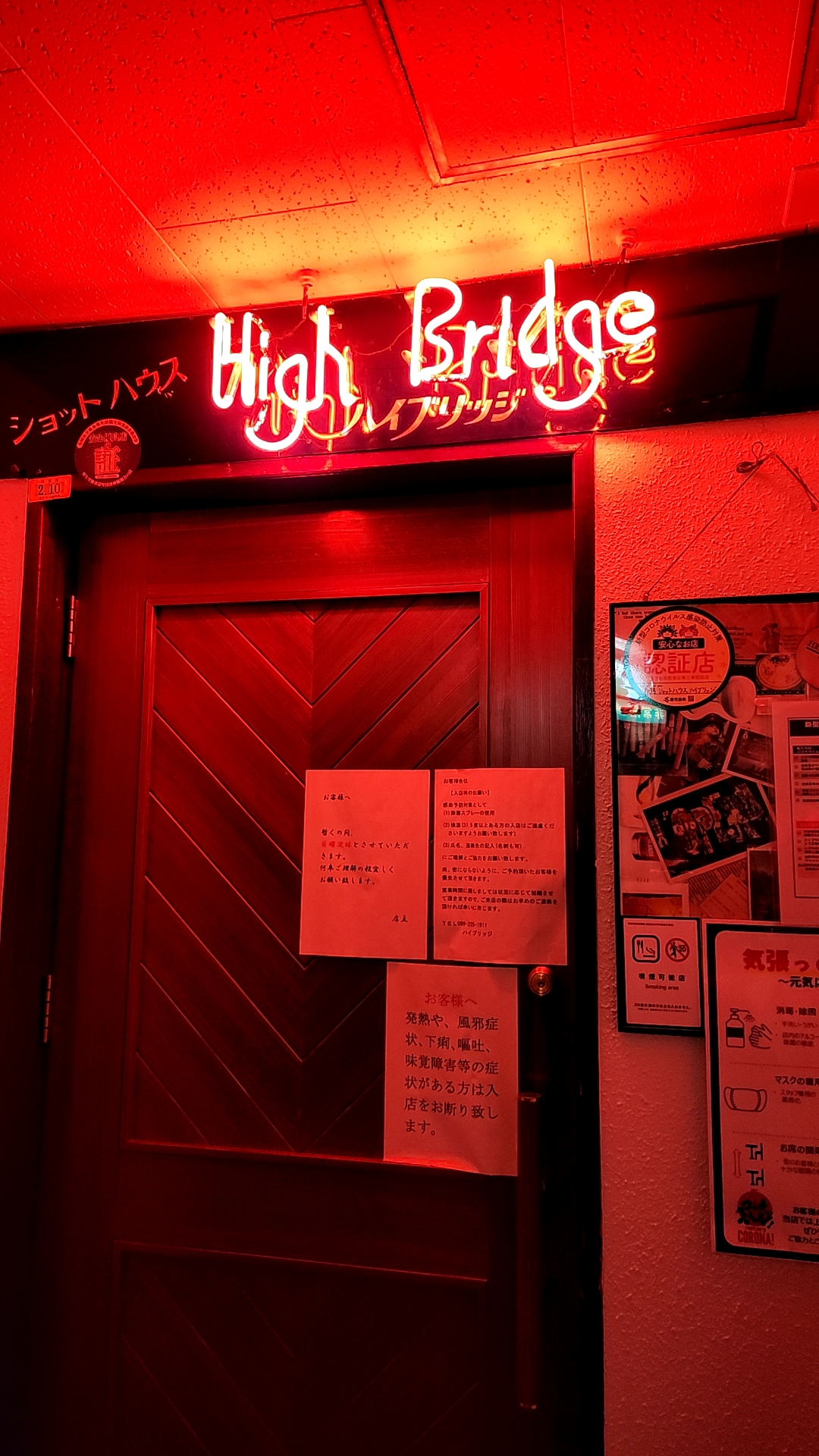 天文館の夜は更けていくも、まるで夜を知らないかの如く深夜まで賑わい続ける。文化通りも騒がしいのだが、山之口本通りや二官橋通りも多くの人が群れを成す。この二つの通りが交差するのが山之口町という交差点。この近くにあるのが「ハイブリッジ」というバーだ。