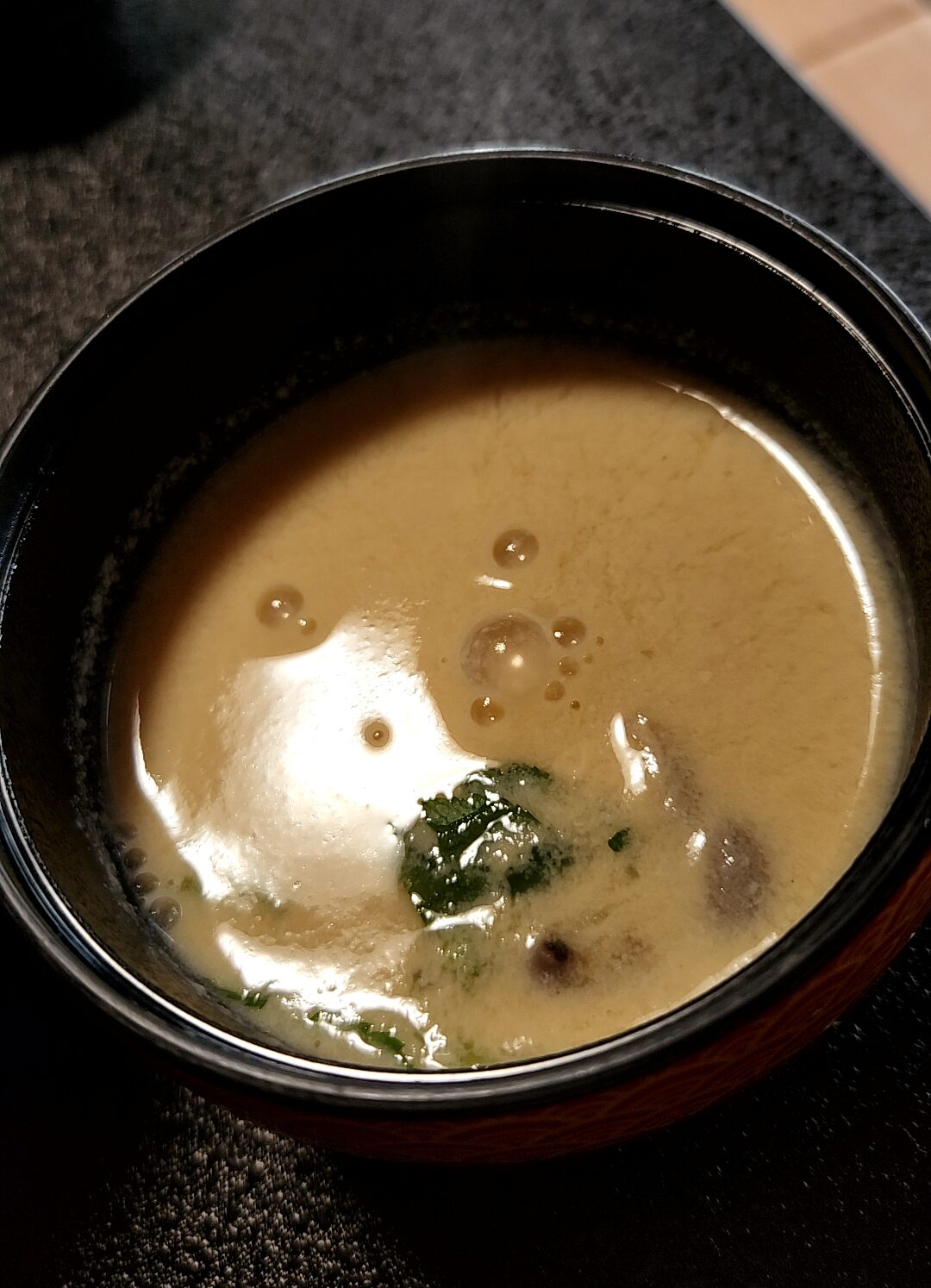 吸物は、豆乳白味噌仕立てを選んだ。こういう濃度の濃いのは好みだ。うなぎに対する食欲が、更に増す