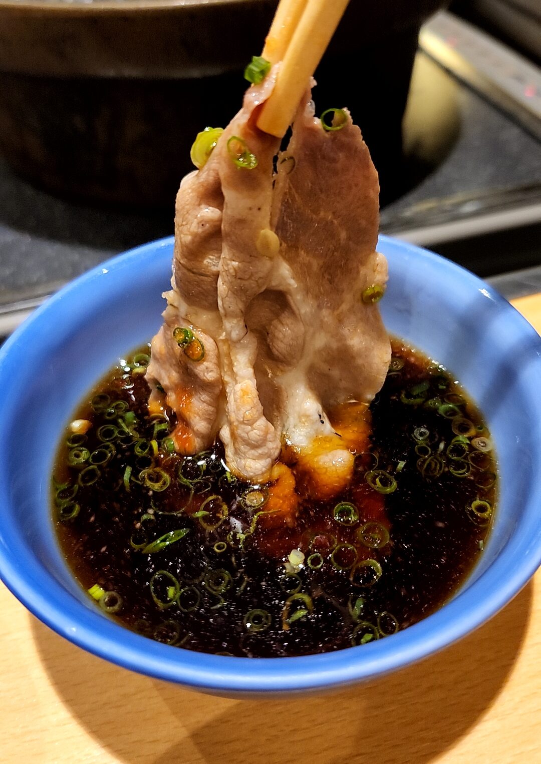 エレベーターで入店すると、だいぶ高級な雰囲気。ちょっと場違いかな・・・と思ったが、店員さんは優しく出迎えてくれ安心。ちょっとリッチな気分になるテーブル席。メニューを拝見したが、内容に反し比較的リーズナブルに感じる。ここは黒豚のしゃぶしゃぶを。