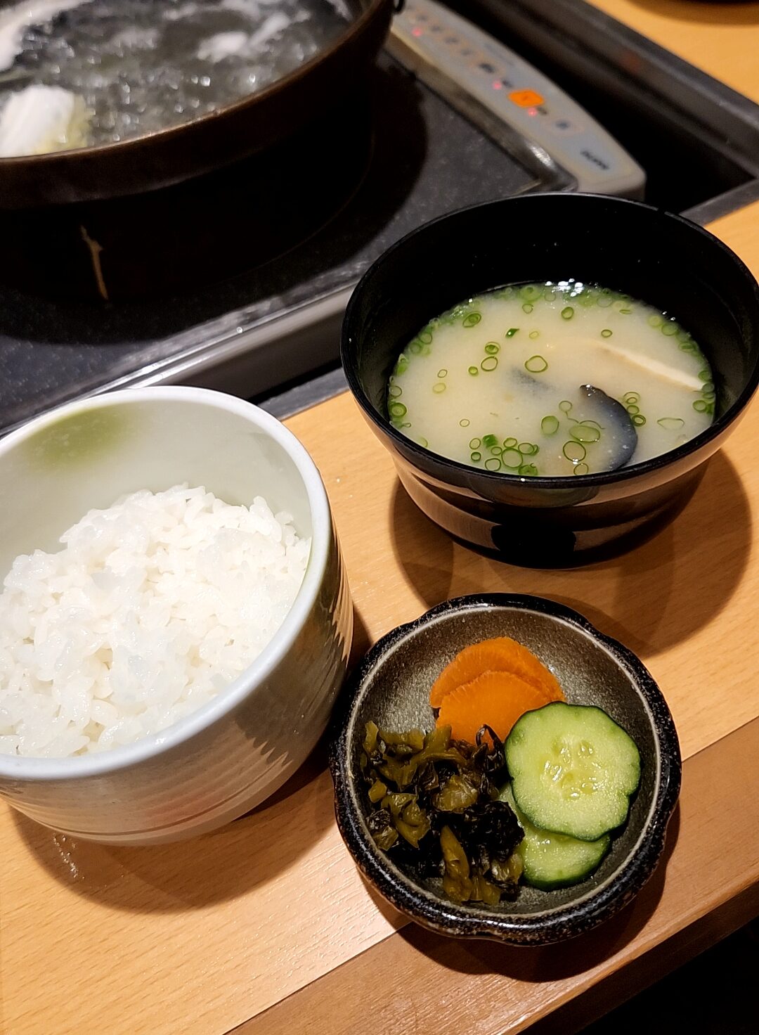 肉や野菜のみならず、ご飯・汁物・香の物も出るので結構腹が膨らむ