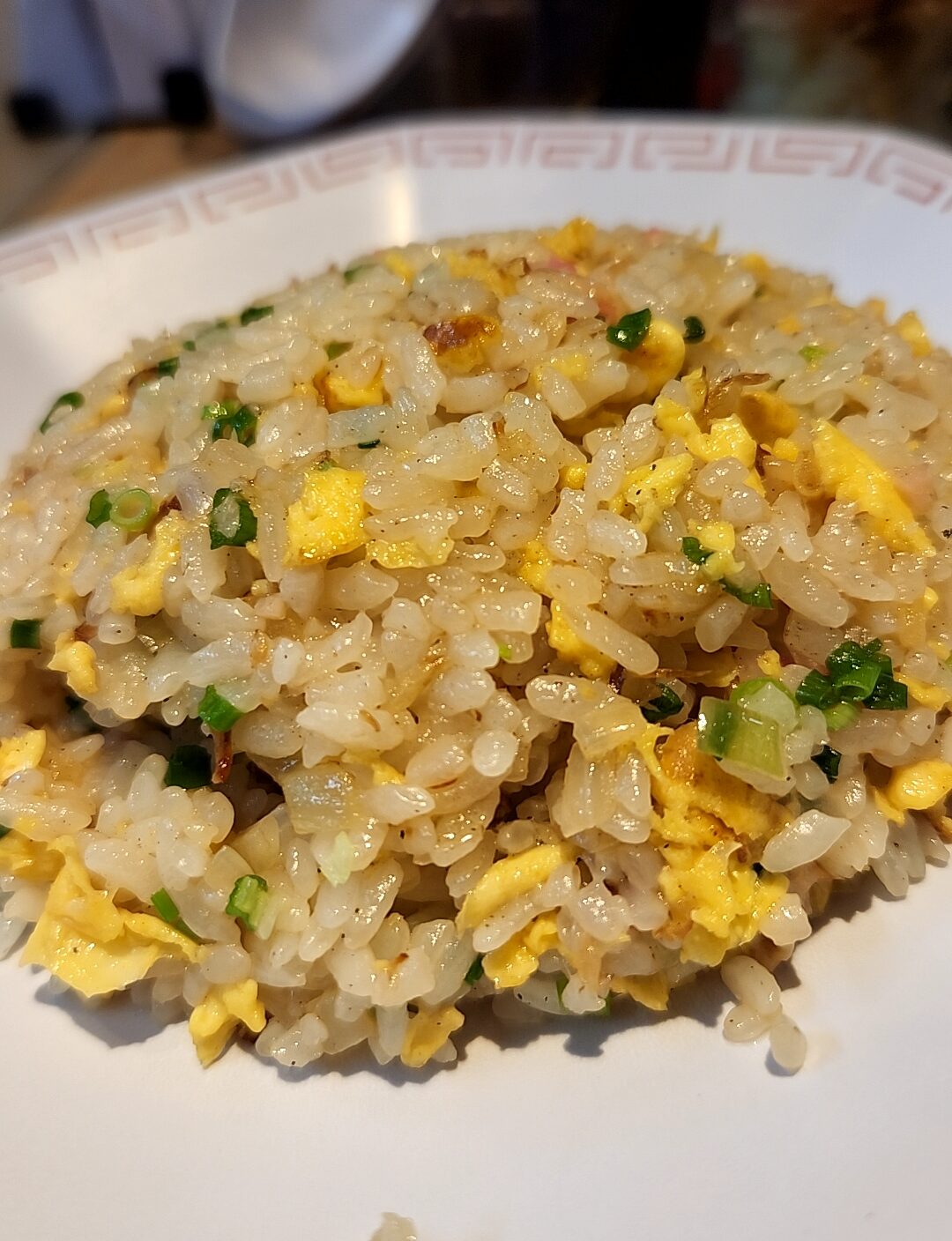 半チャーハン。調理済みのものを、提供前に再度中華鍋で炒めるスタイル。ラーメンスープのみならず、こちらに擦りおろしニンニクを塗りたぐって食べるのも美味い