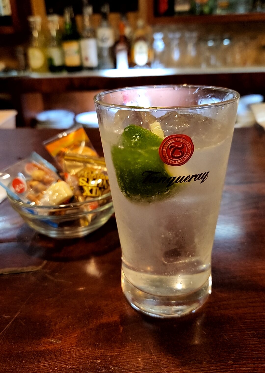 ジントニック。雪国共々、スイスイ飲んでいるのを「ジュースみたいに飲みますね」とマスターに笑われてしまった
