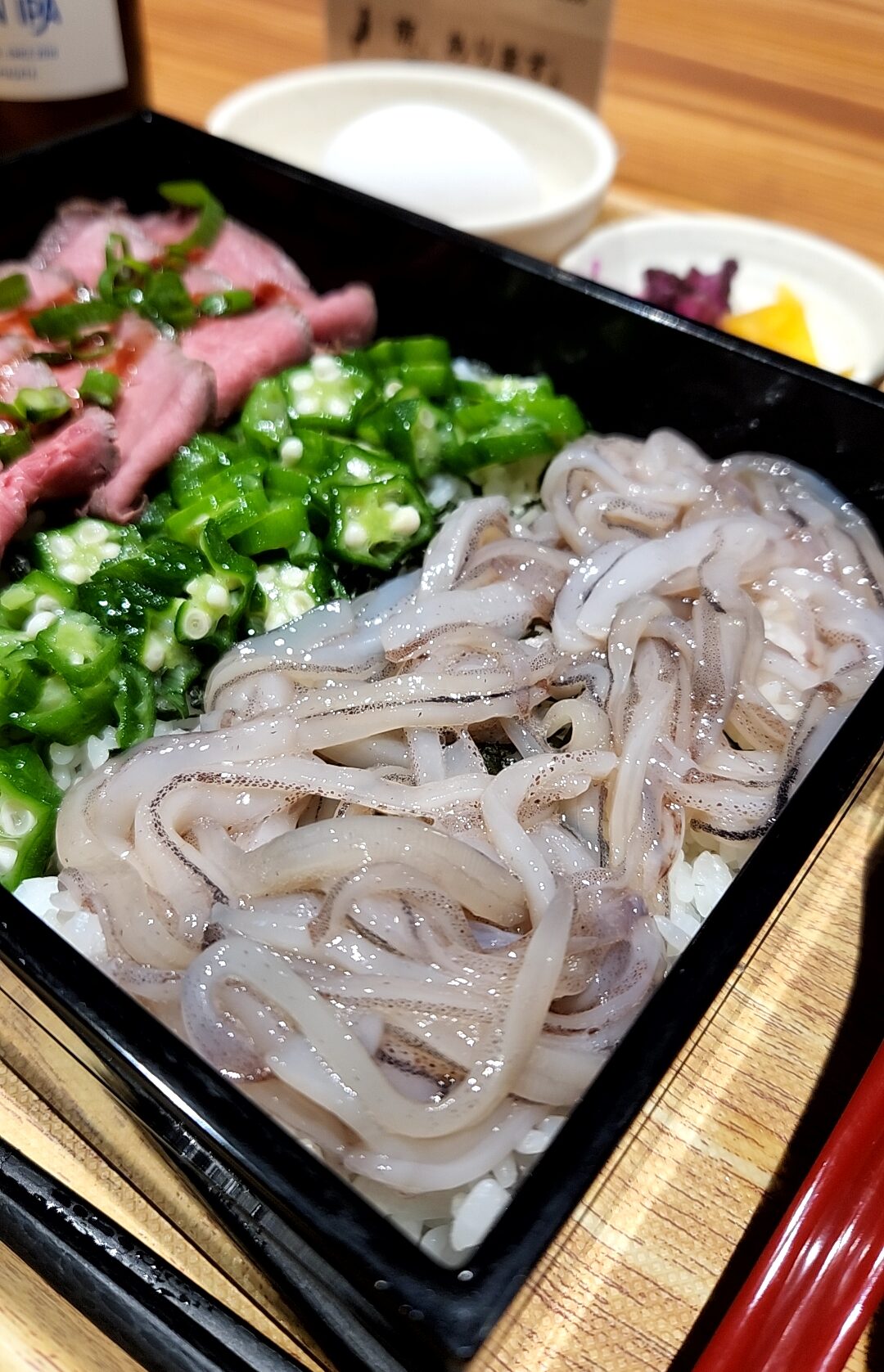 大量のイカに加え、山形牛のローストビーフが盛られた贅沢なビジュアル。海・山ともに山形を堪能できる逸品。テレビの影響を恐れていたがスムーズな案内に安堵。いやーこれはお邪魔して良かった。同施設にはラーメン屋やフィッシュアンドチップスの店があったり、お酒だけ購入し別店舗の料理を食べる・・・なんてこともできるそうです。