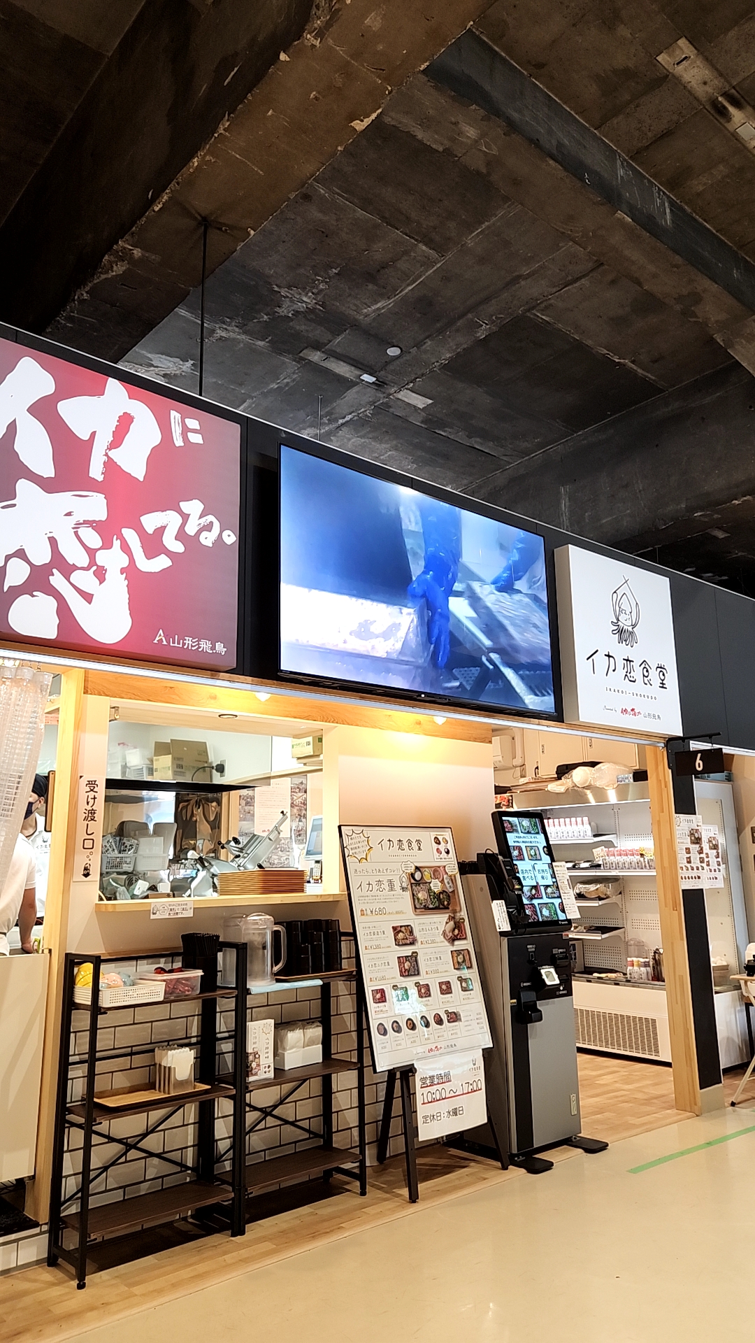 酒田港にも朝から営業する食事処はある。当初はお邪魔するつもりだったのだが・・・実はその前日、テレビで紹介されたとある店の料理が引っ掛かり、予定変更。同じく港に隣接する施設「SAKATANTO」にある店、名は「イカ恋食堂」イカ加工業者の飲食店だ。