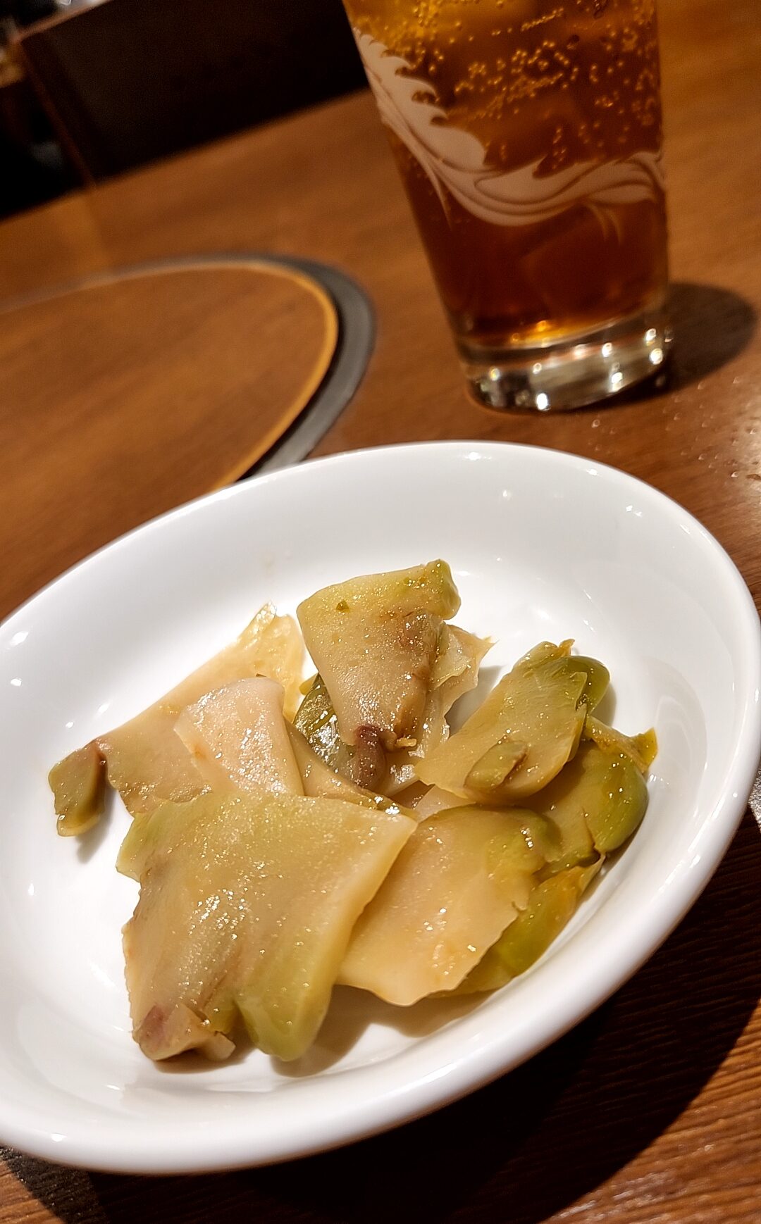 ドラゴンハイボールと一緒に提供されたお通しはザーサイ