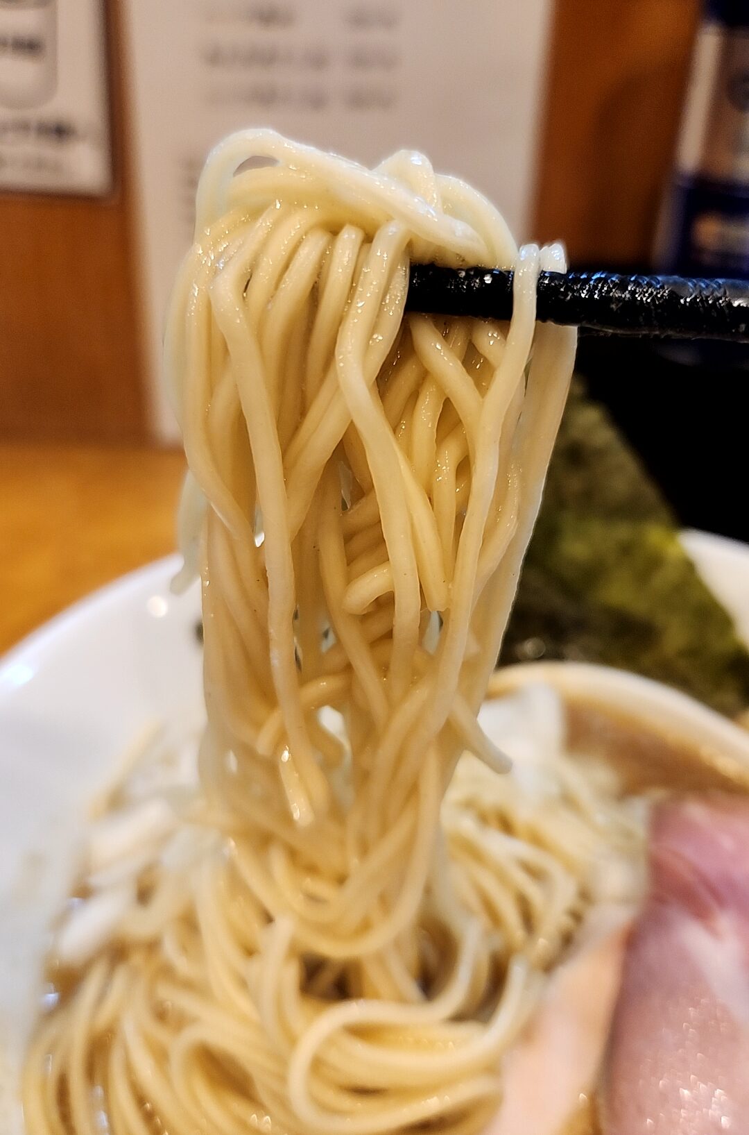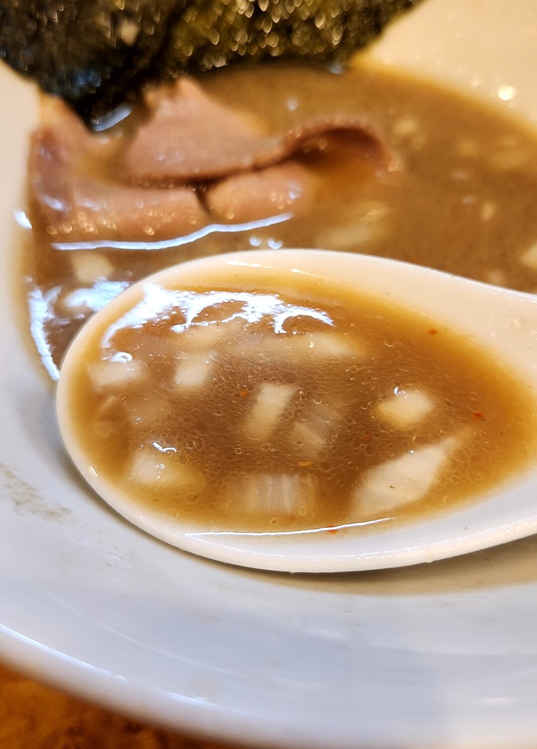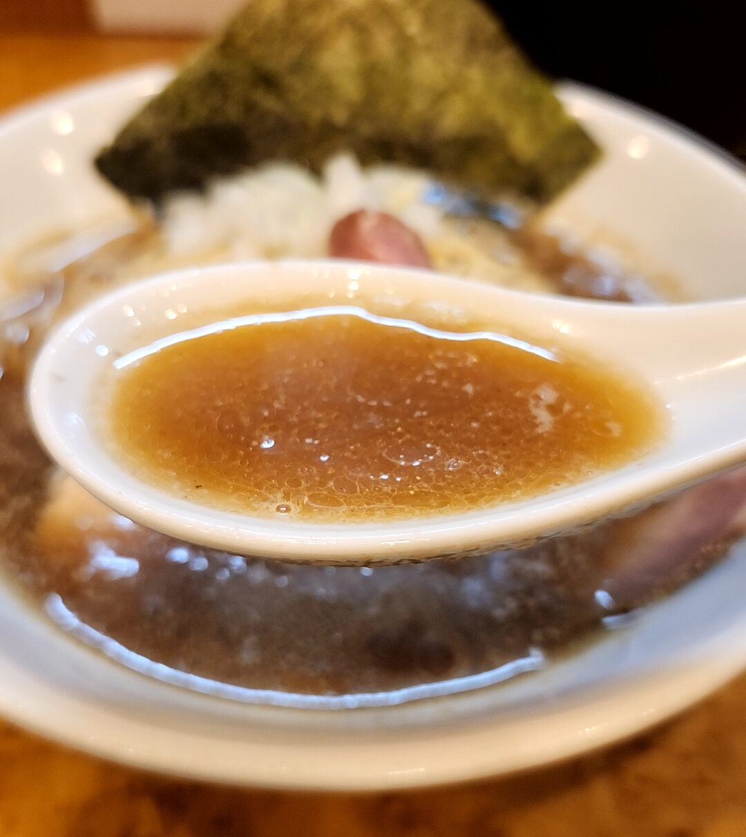 煮干しの旨味強さと独特の酸味は流石。動物系未使用ということもあってか、口当たりは滑らか。えぐ味もあるが、不快感は全く無し