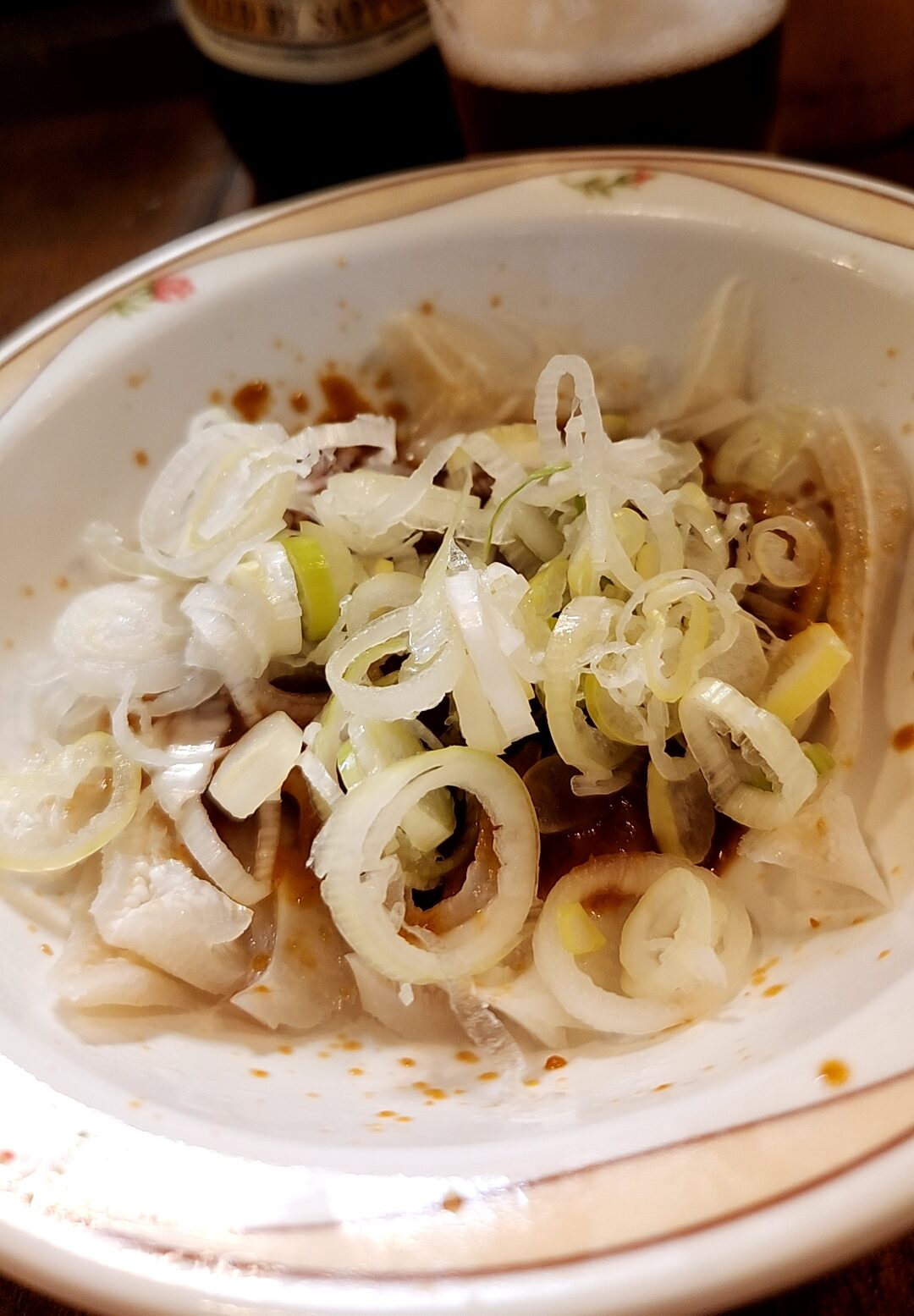 ミミガー。ミミガーの酢味噌と白ネギのマッチがたまらない。人気のガツ刺しが売り切れなのは残念だが、これも十分美味かった